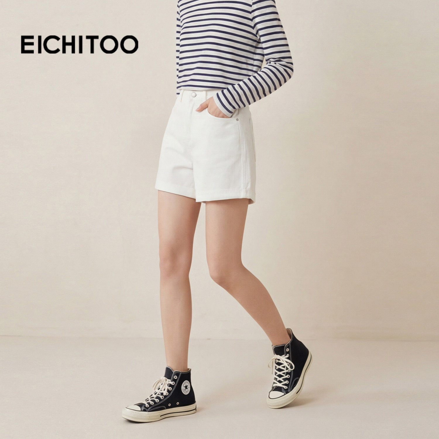 爱居兔舒适休闲基础A字牛仔短裤2026年夏季新款女时尚白色短裤