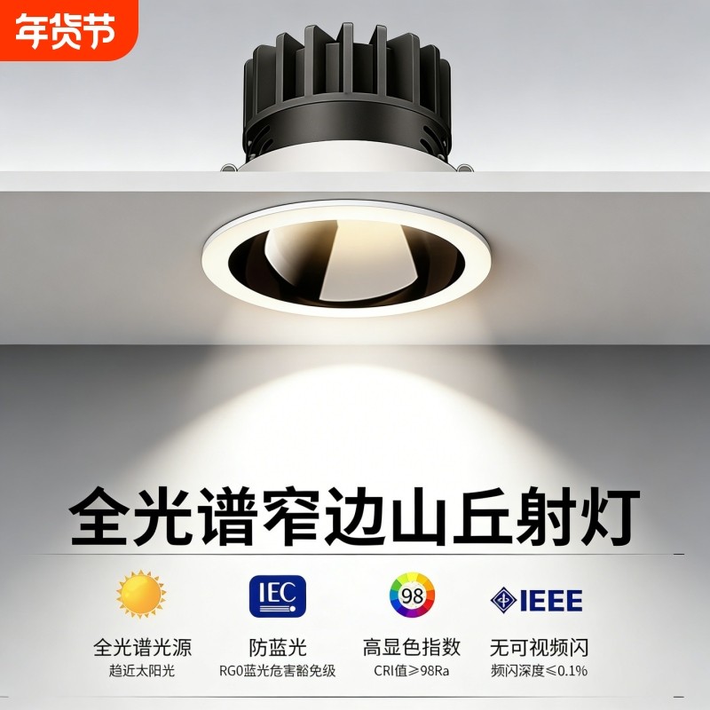 射灯LED天花灯小山丘嵌入式超亮家用COB筒灯7W可调商用聚光孔灯