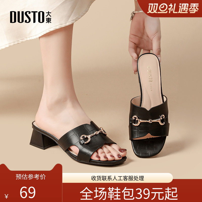 〖WP〗大东时装拖鞋女鞋夏季新款简约优雅粗跟中跟方头套脚X1017