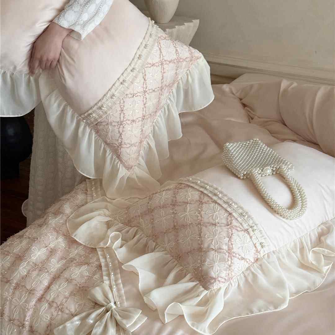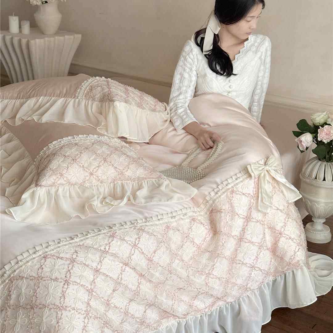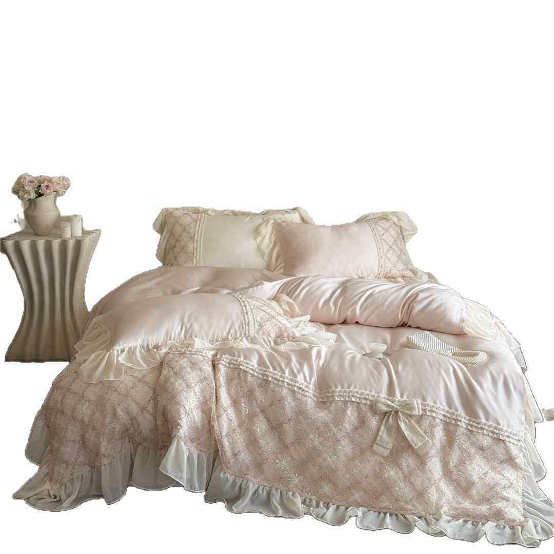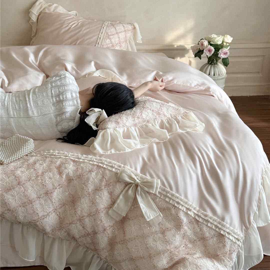 法式风蕾丝蝴蝶结凉感透气床品夏季兰精莱赛尔天丝四件套