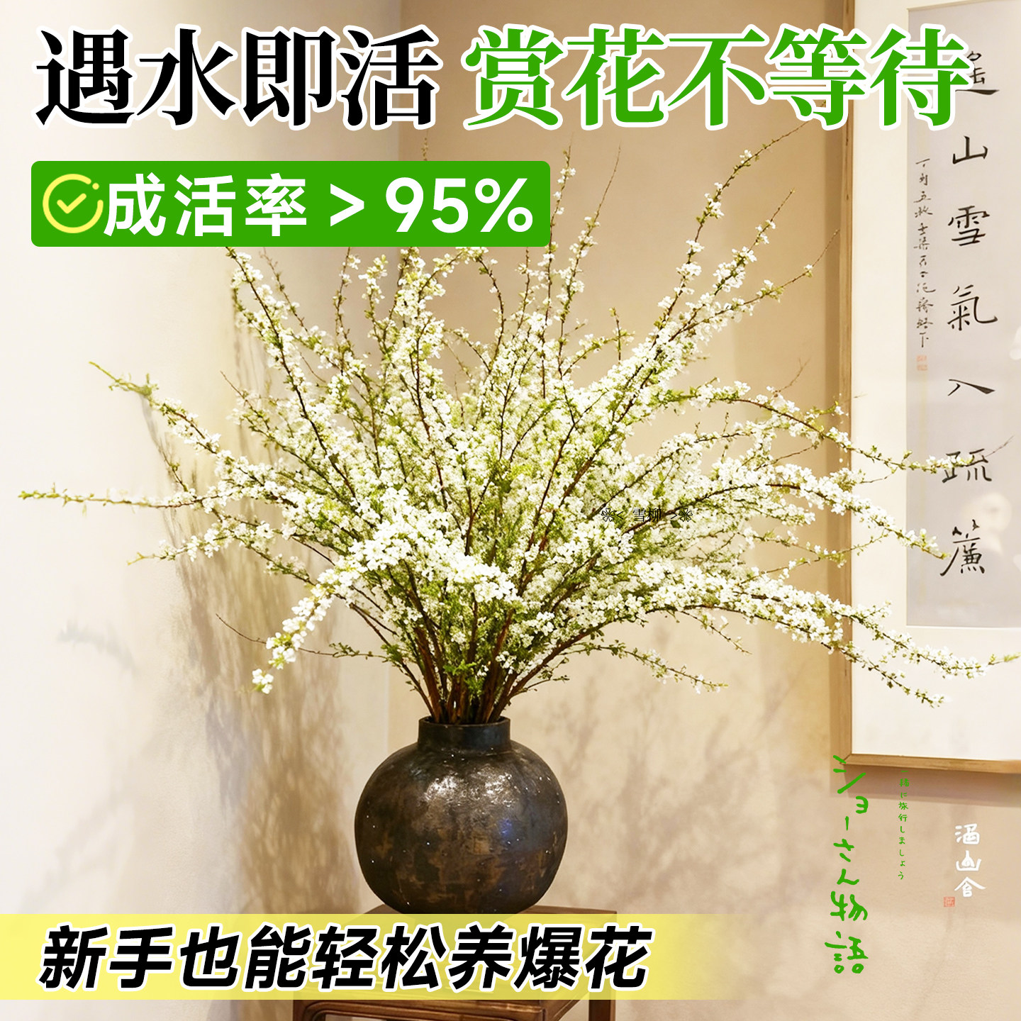 雪柳鲜枝带花苞水养干枝冬季花卉云南发水培植物室内好养绿植开花