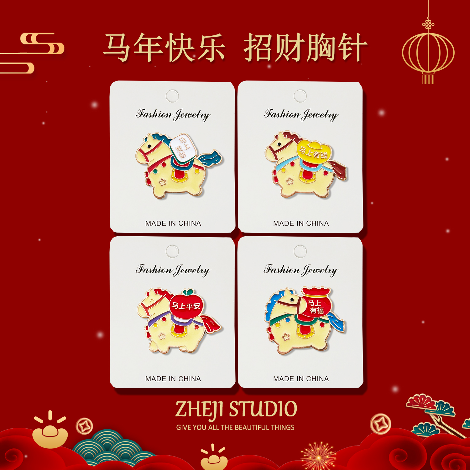马上有钱胸针2026马年胸牌别针金属徽章节日装饰毛衣配饰固定衣服