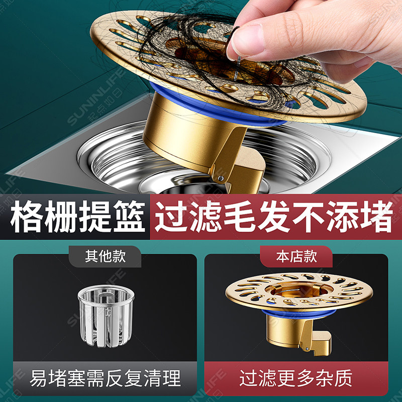 地漏加厚不锈钢防臭五金过滤芯卫生间阳台全铜下水道洗衣机浴室