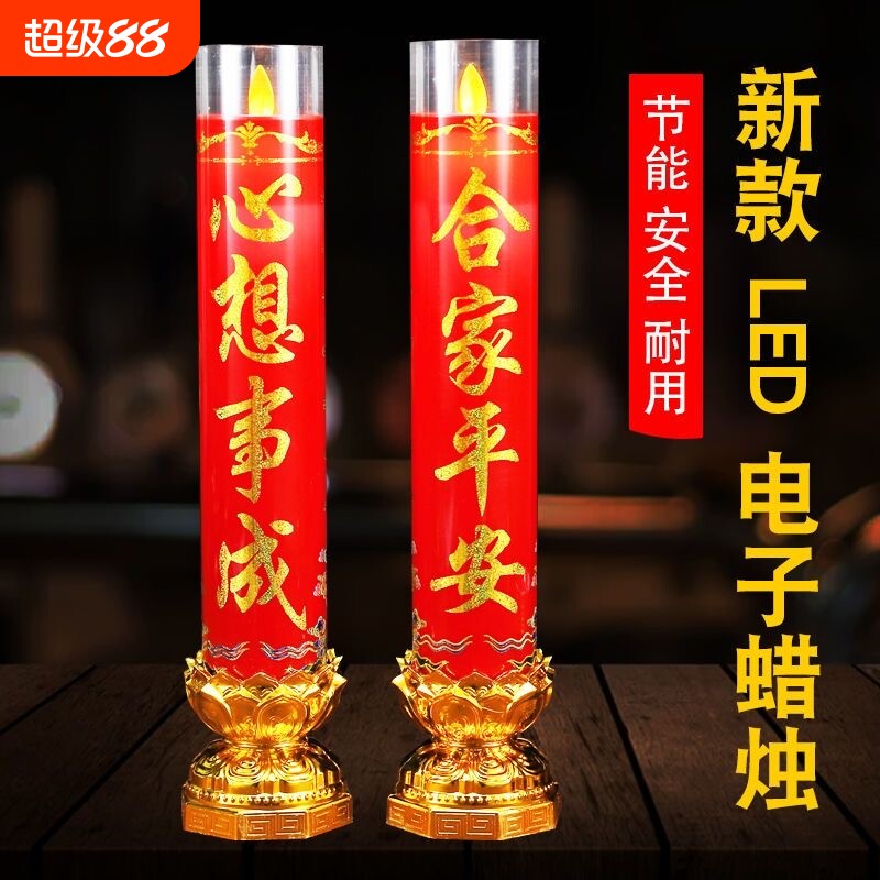 过年新款led电子蜡烛财神招财灯烛台摆件佛灯长明灯佛前供灯电池