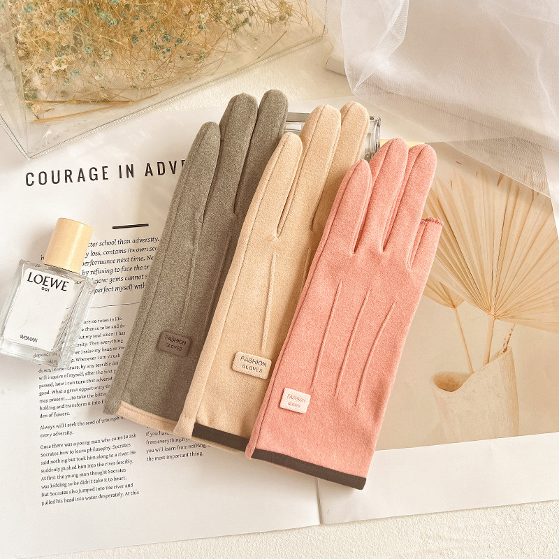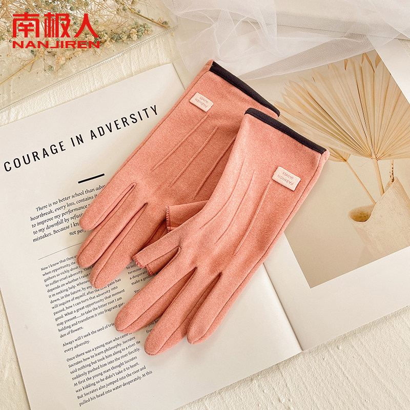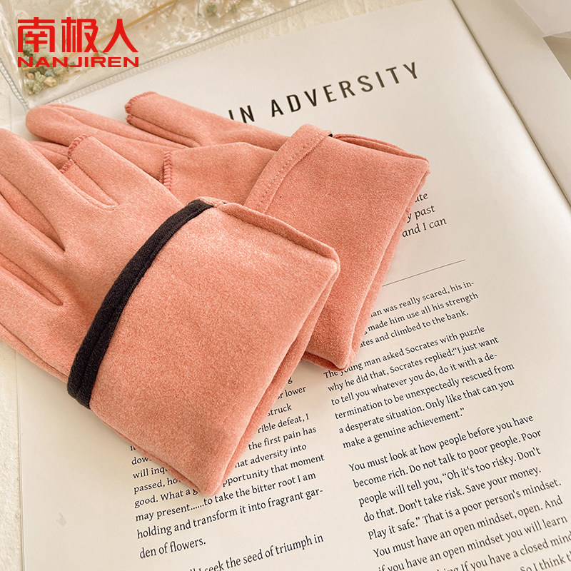 手套秋冬天女加绒保暖可爱德绒女士骑行防寒骑车防风触屏