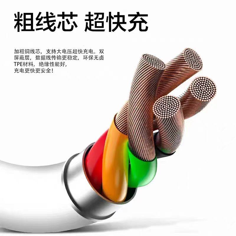 超级快充三合一数据线通用充电线适用苹果荣耀华为OPPO小米VIVO手机通用车载一拖三数据线透明芯片type-c带灯