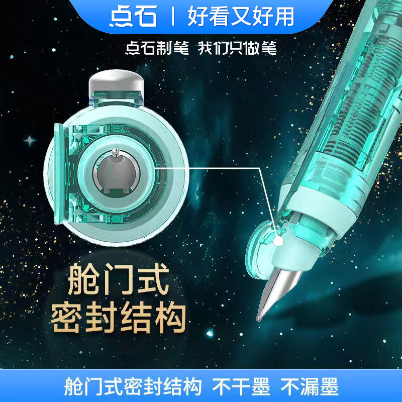 点石按动钢笔小舱门时空舱太空舱钢笔三年级小学生初中生专用细尖小仓门蓝色墨蓝包尖钢笔点石制笔黑科技文具