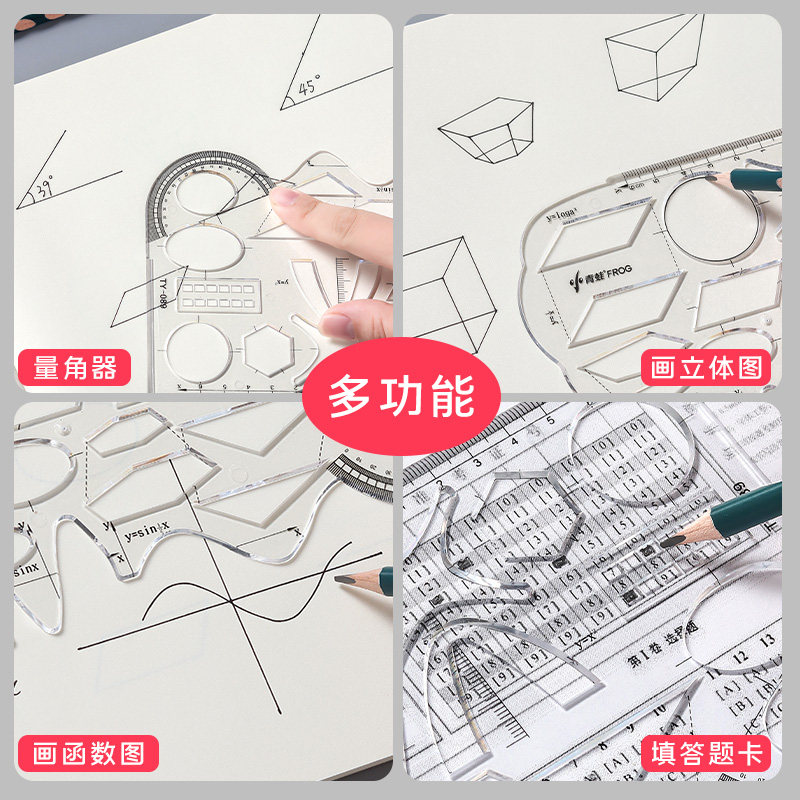 多功能几何函数绘图尺初中高中专用图形工具软尺套装数学画图模板