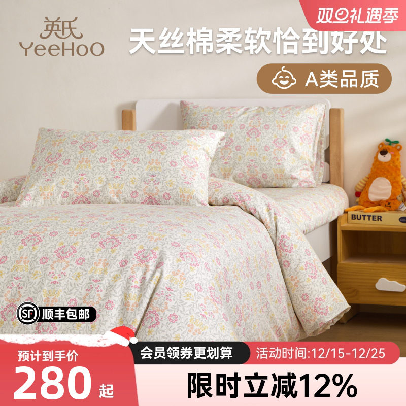 英氏儿童春秋四件套床上用品天丝棉被套床上用品三件套床单欧若拉