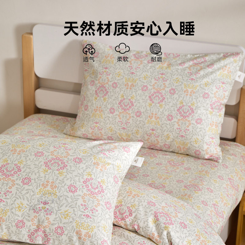 无印良品全棉四件套学生宿舍纯棉卡通儿童被套床单三件套床上用品