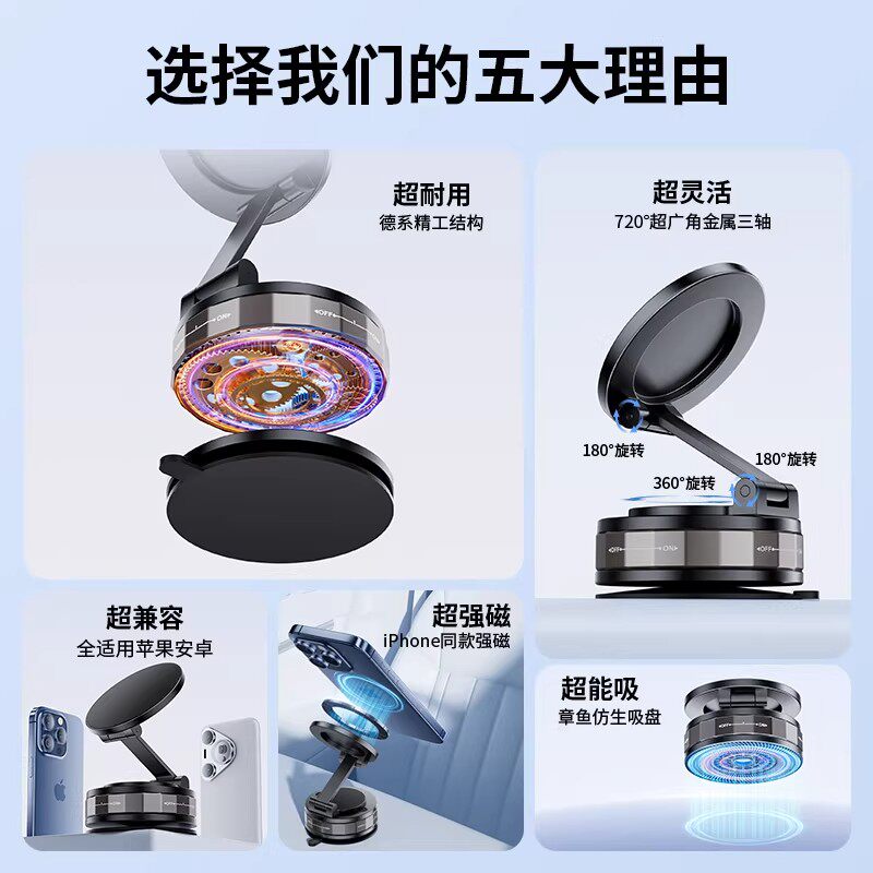 车虫2025新款车载手机支架磁吸magsafe真空吸附汽车导航专用吸盘旋转折叠便携浴室多功能桌面墙壁通用支撑