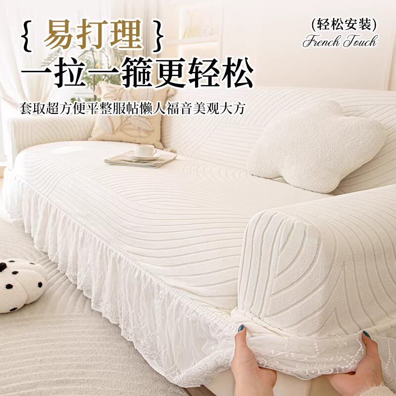 奶油蕾丝裙边沙发套罩2026新款防猫抓沙发罩全包万能套四季通用型