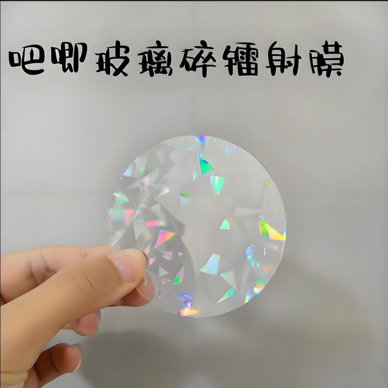 马口铁吧唧素面碎玻璃镭射保护膜炫彩覆膜徽章谷子圆膜耗材冷裱膜