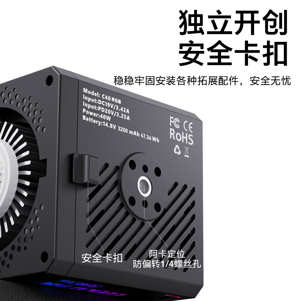 LEEKAI力凯超频50WC40RGB掌上COB补光灯摄影拍摄专用打光灯影视灯便携式户外夜景美食拍照手持外拍常亮闪光灯