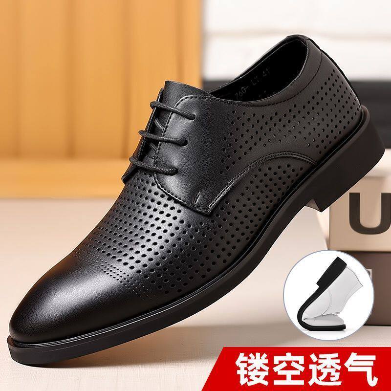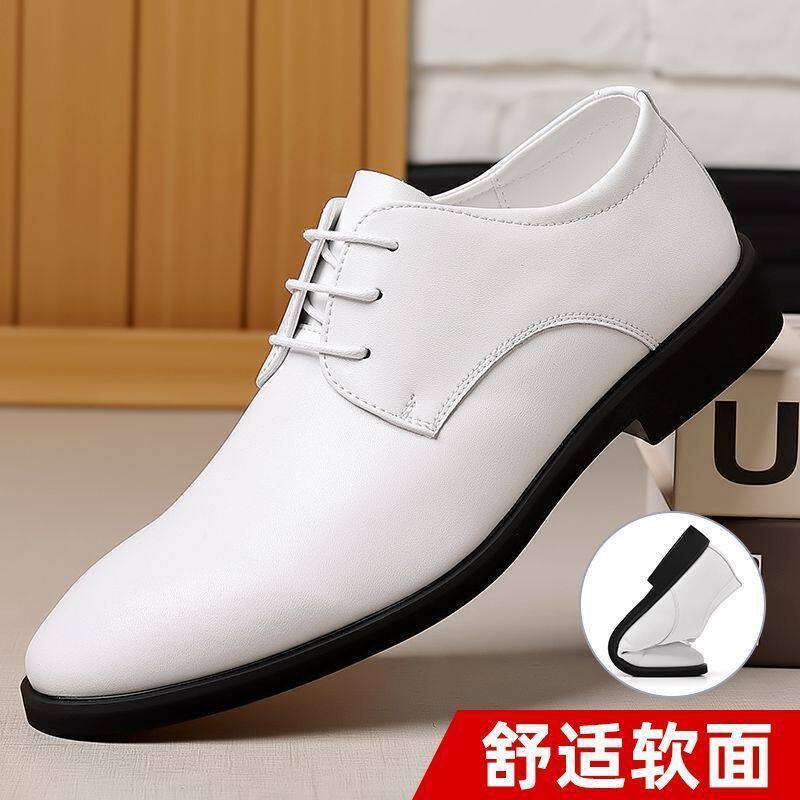 免开胶真皮休闲皮鞋男款软皮厚底增高透气商务系带平底缝线德比鞋