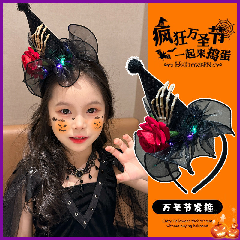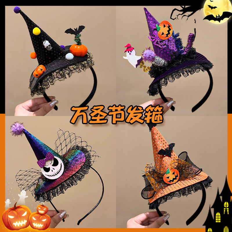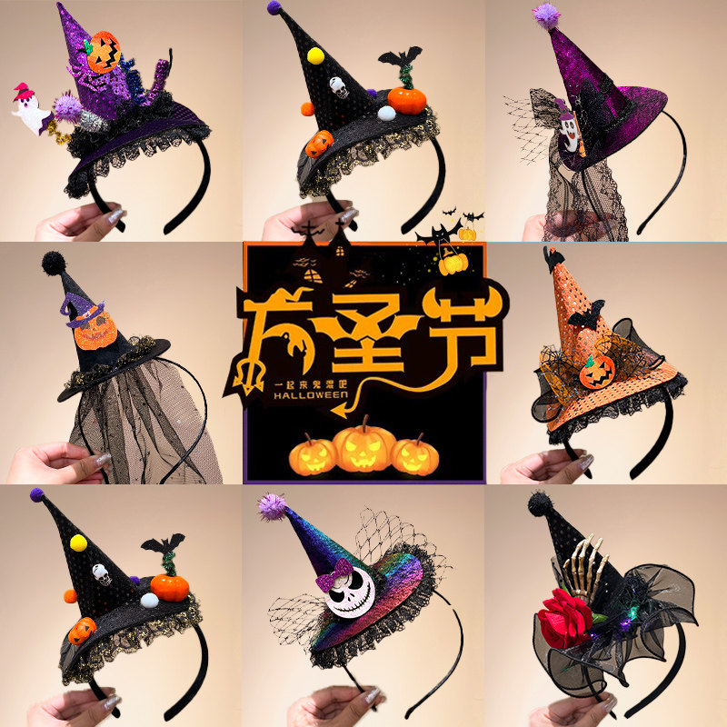 万圣装扮头饰骷髅南瓜头箍女cos派对2024新款创意巫婆帽搞怪发箍
