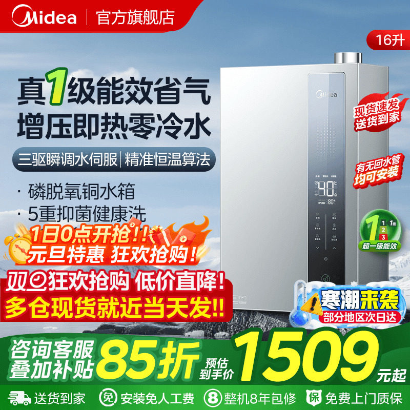 【政府补贴】美的一级能效增压零冷水16升家用恒温燃气热水器LN3S