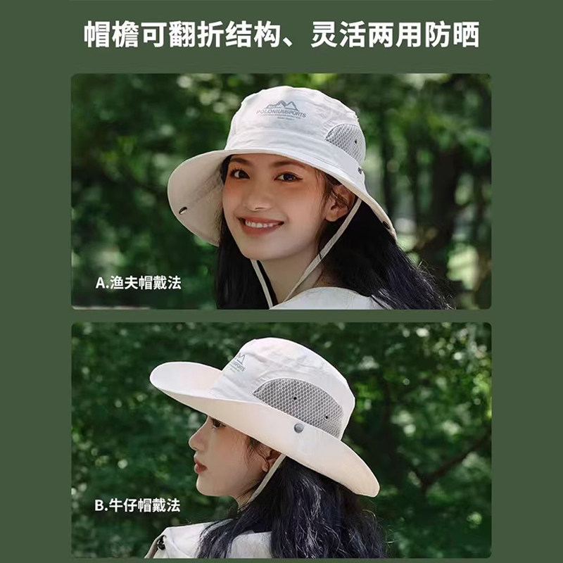 户外遮阳防晒帽子夏季防紫外线渔夫帽钓鱼登山透气太阳帽男女速干
