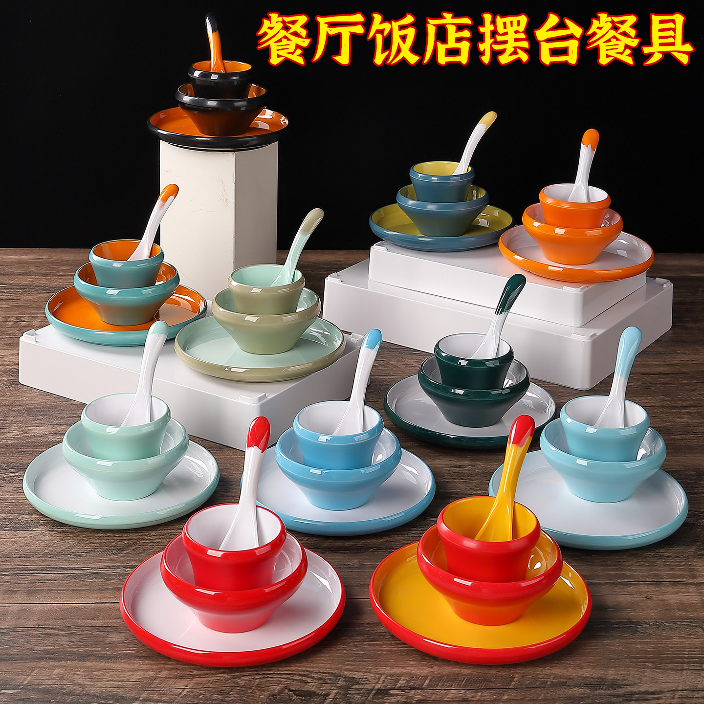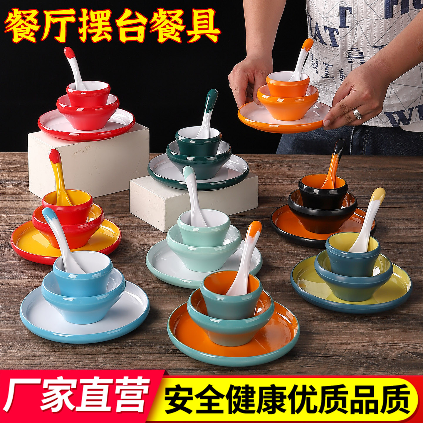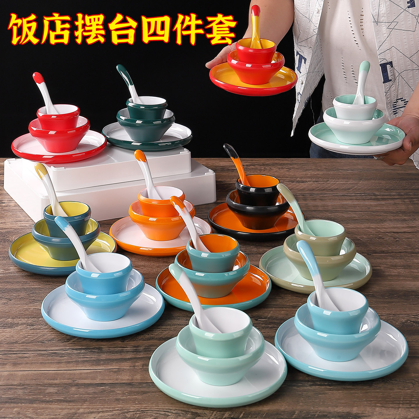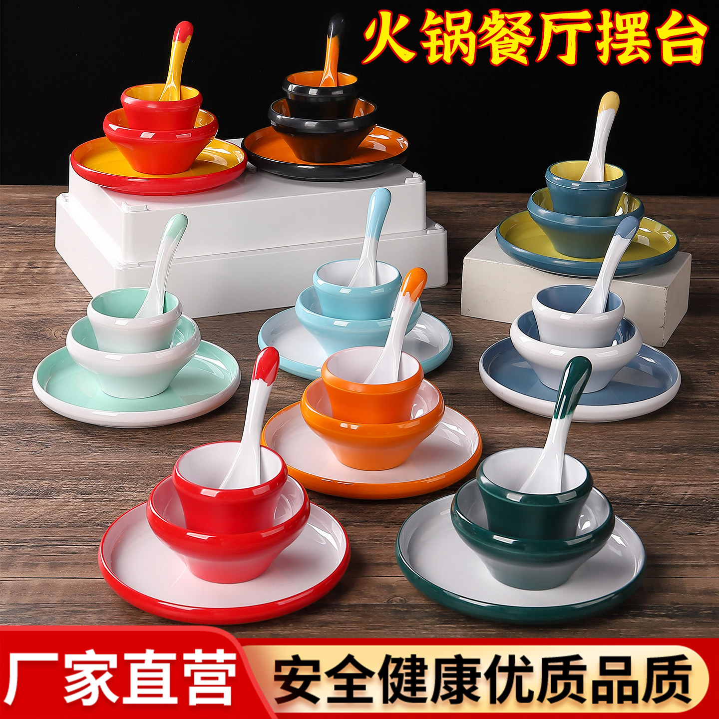 火锅店摆台四件套饭店私厨密胺餐具仿瓷勺子碗碟餐厅商用碗勺套装