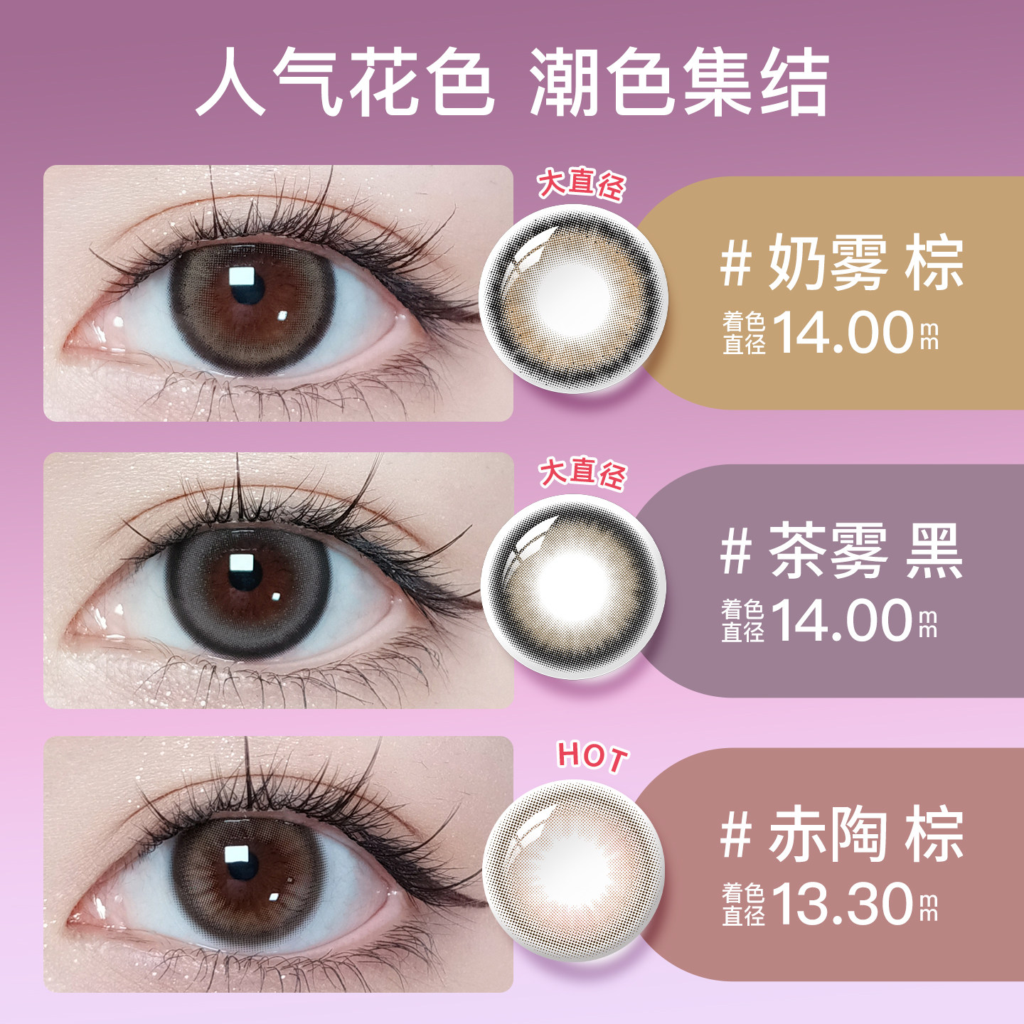 海俪恩萌宠美瞳半年抛2片桃心粉棕隐形眼镜小直径官方旗舰店正品