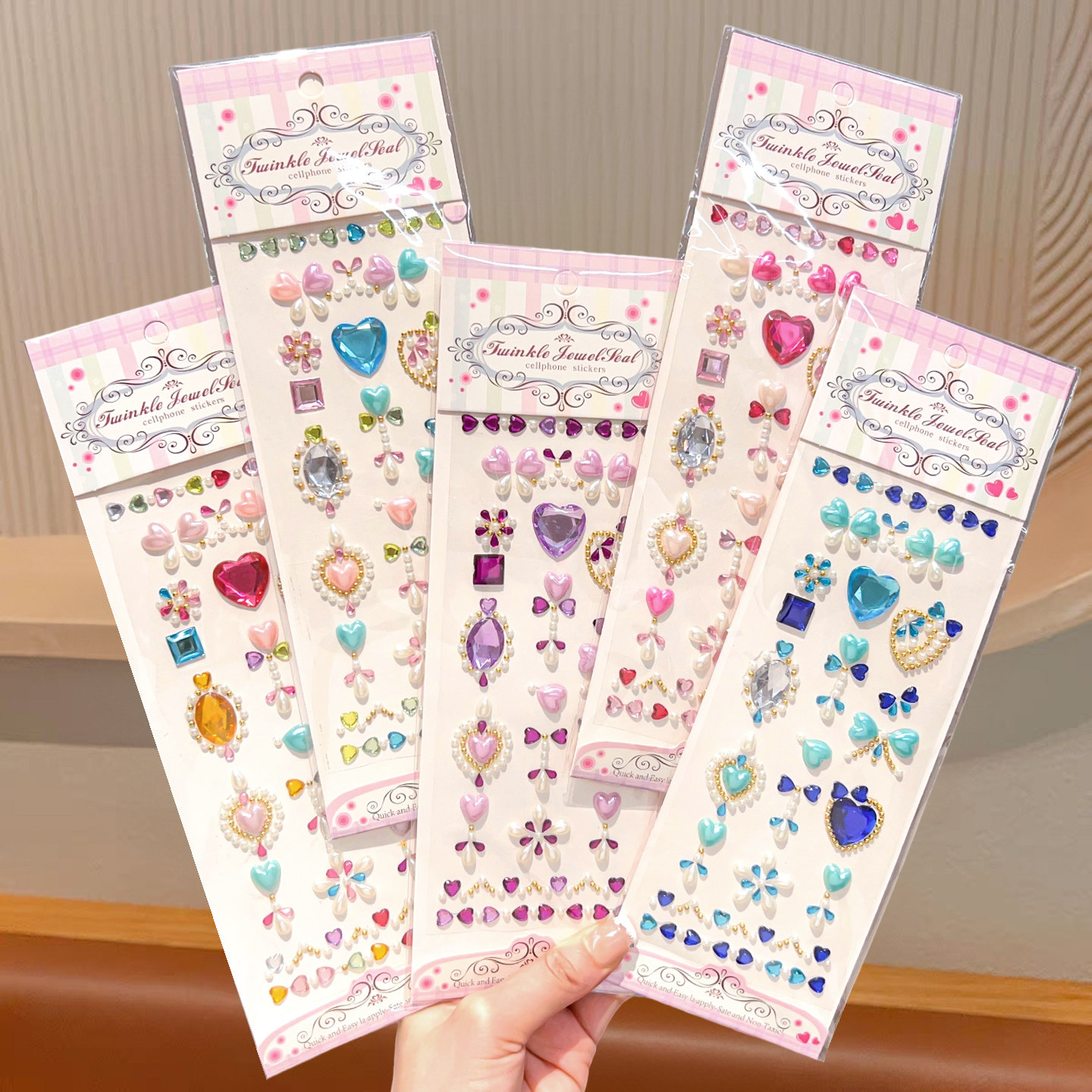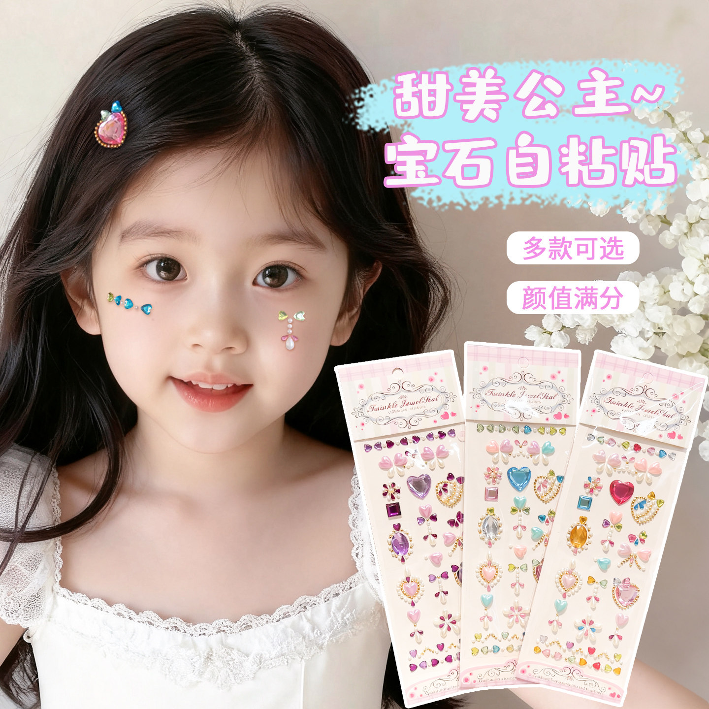 宝石贴纸儿童化妆贴脸饰品妆容水晶水钻公主可爱小女孩脸部彩绘女童额头眉心贴水钻立体装饰面部贴画珍珠脸贴