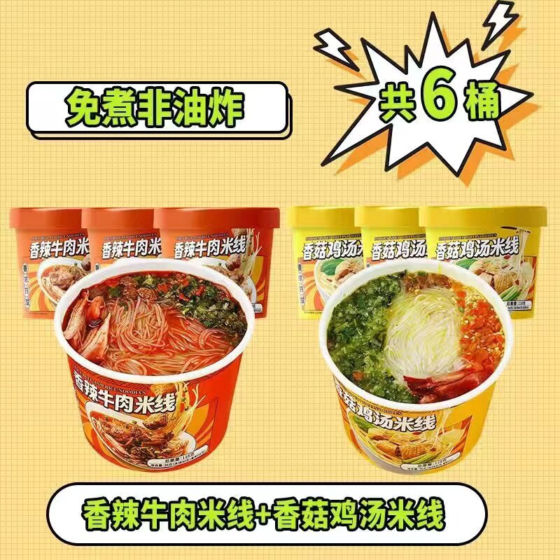过桥米线香菇鸡汤/香辣牛肉混合口味6桶多规格