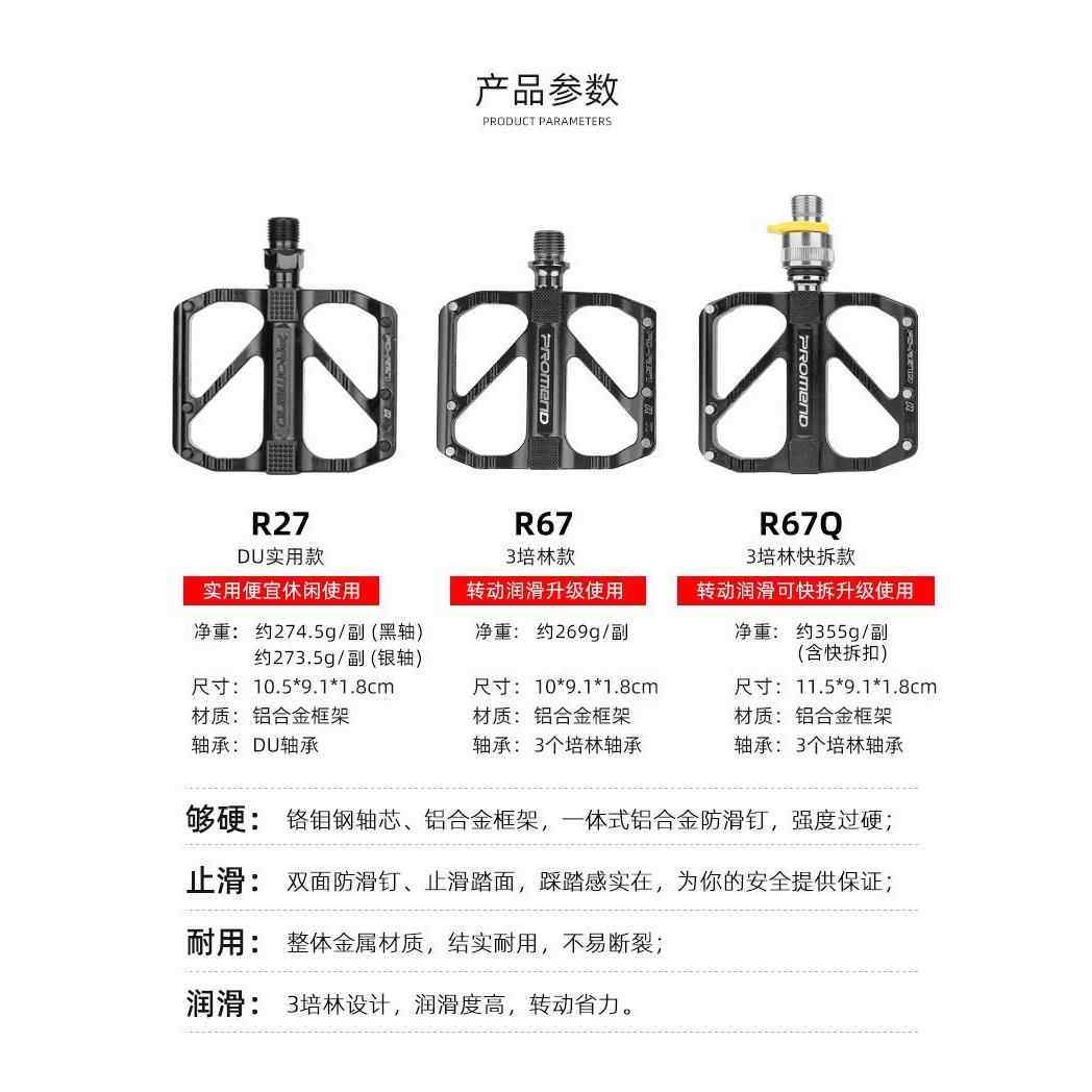 PROMEND自 行 车培林脚踏公路车铝合金脚蹬防滑带钉快拆培林脚踏板饰品