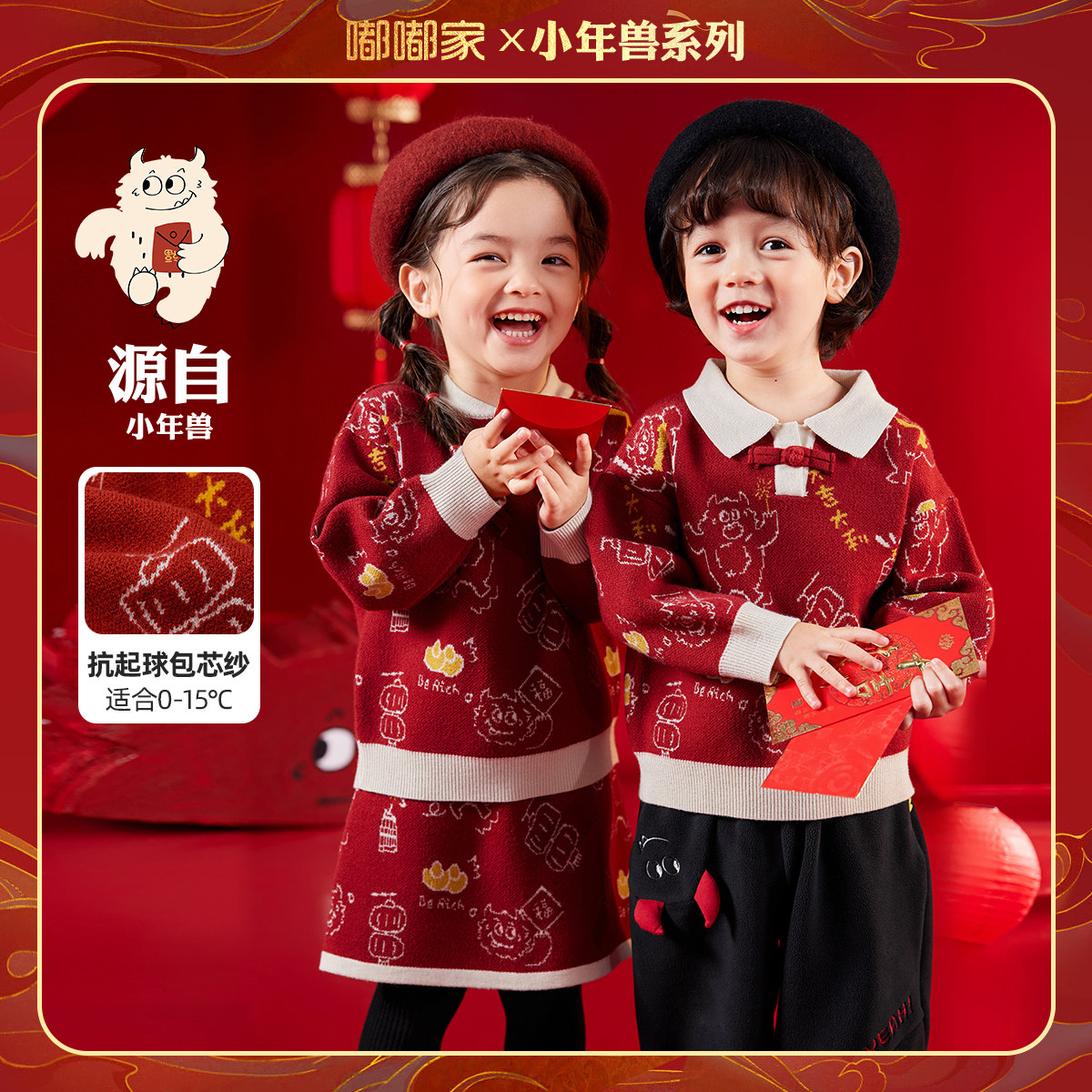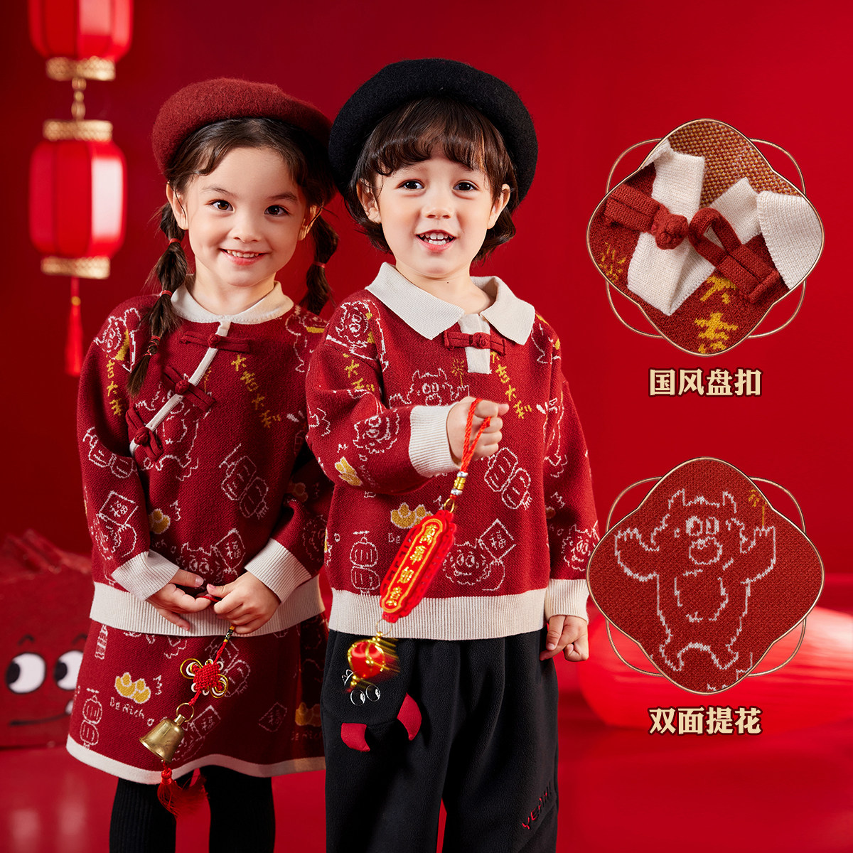儿童唐装毛衣龙年拜年服宝宝过年喜庆衣服男童冬装针织衫女童年装