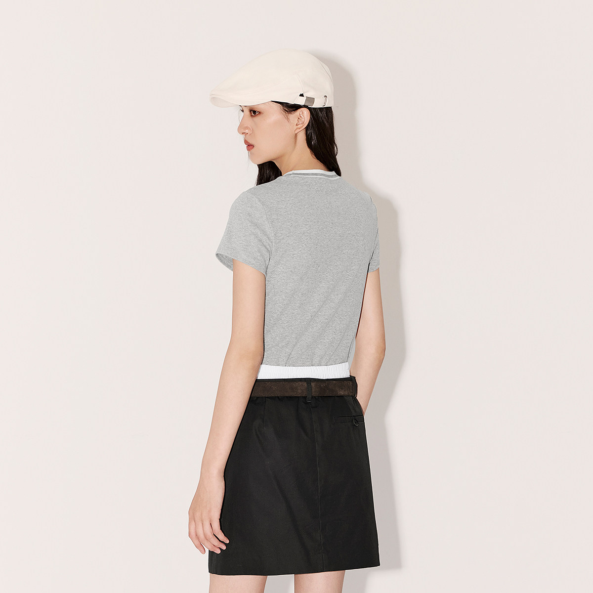 陈都灵丨凉感T森马短袖T恤女修身纯色基础夏季新款圆领白色女装
