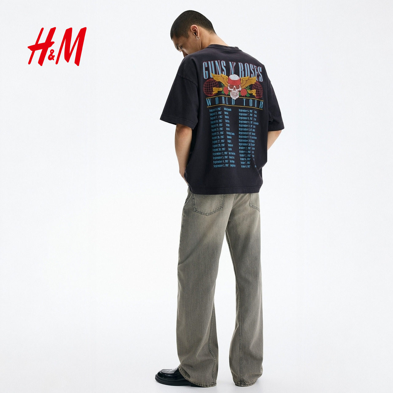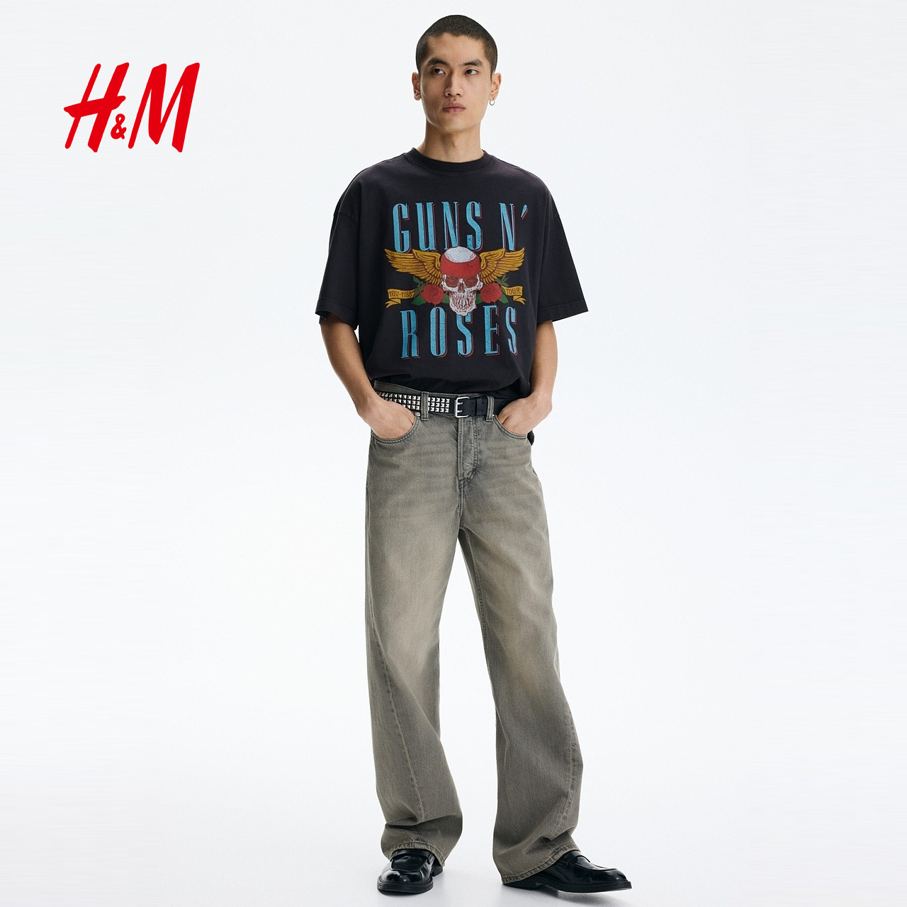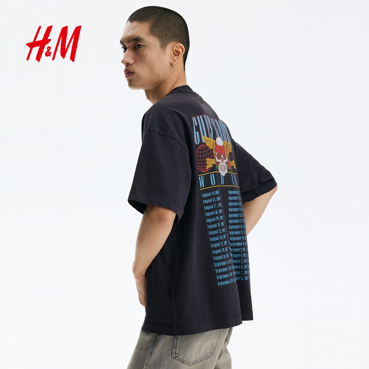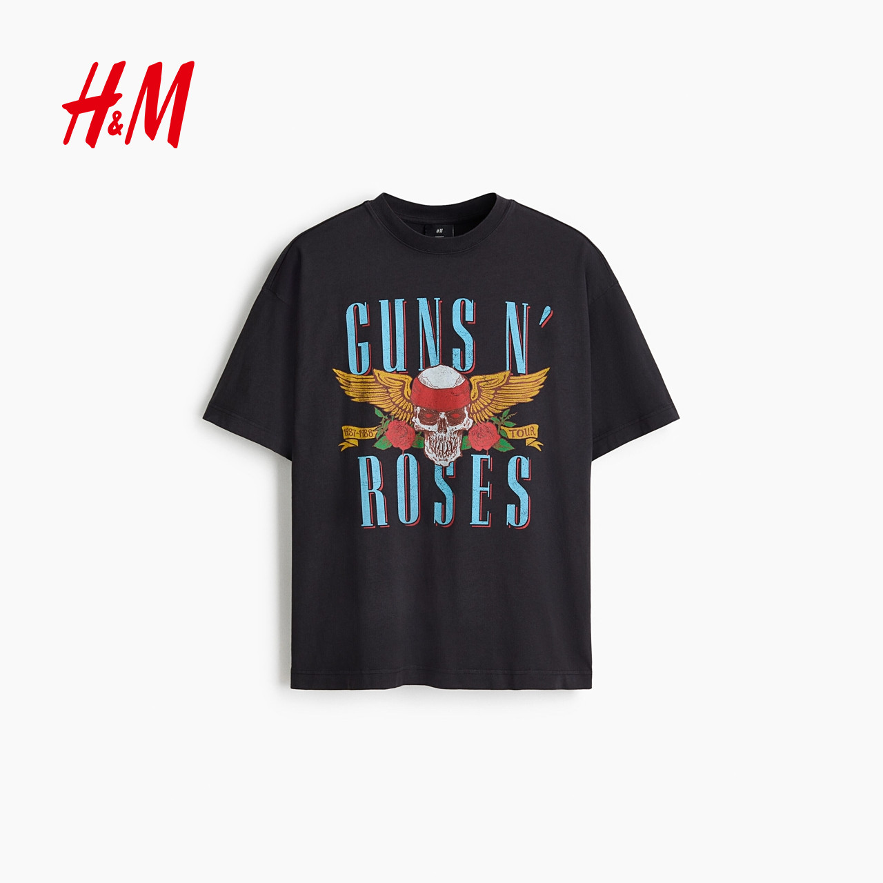 【枪炮与玫瑰乐队】HM男装女装T恤春季新款大廓形重磅短袖1159823