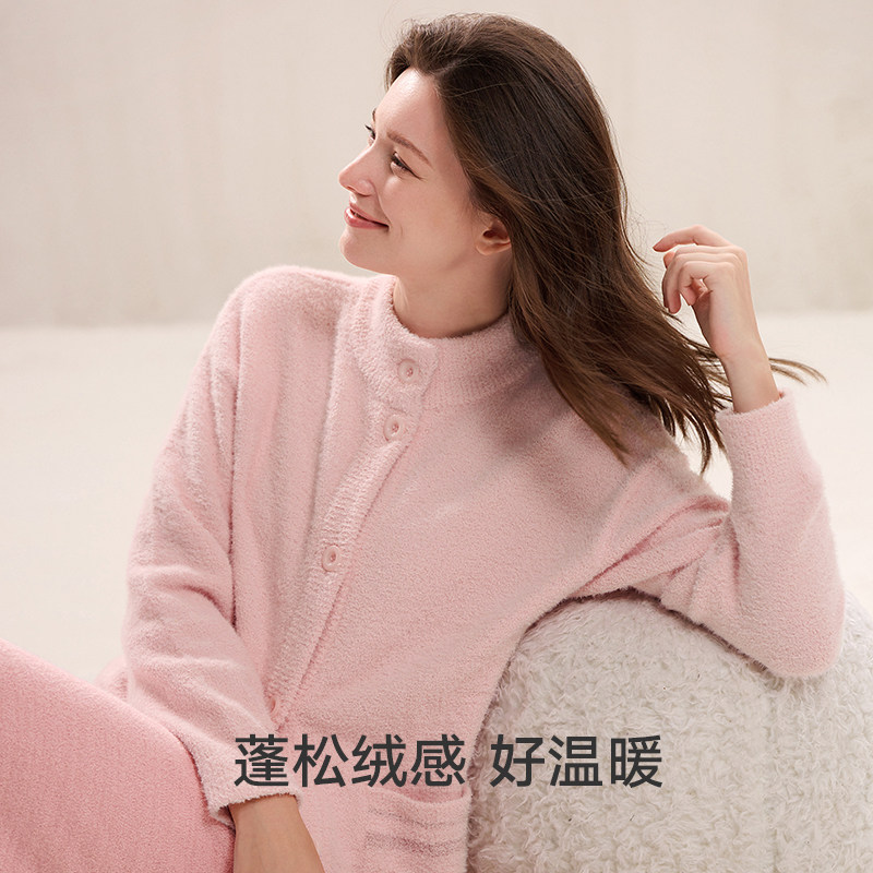 雪松之恋|曼妮芬秋冬厚款抱抱绒舒适可外穿高领家居服套装睡衣女