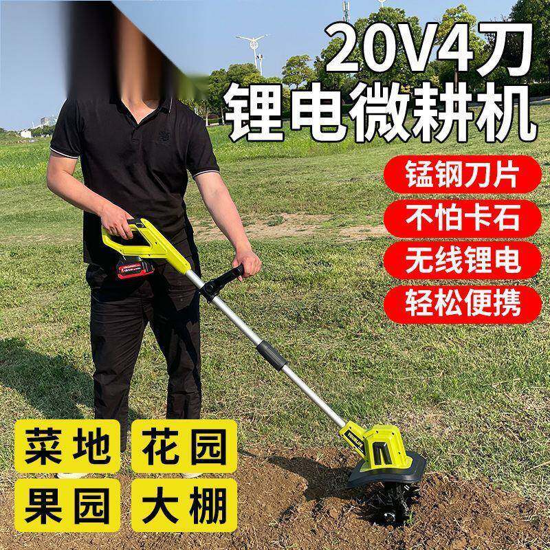 手持锂电微耕机松土机农用翻土机小型家用电动锄头挖土旋耕地机