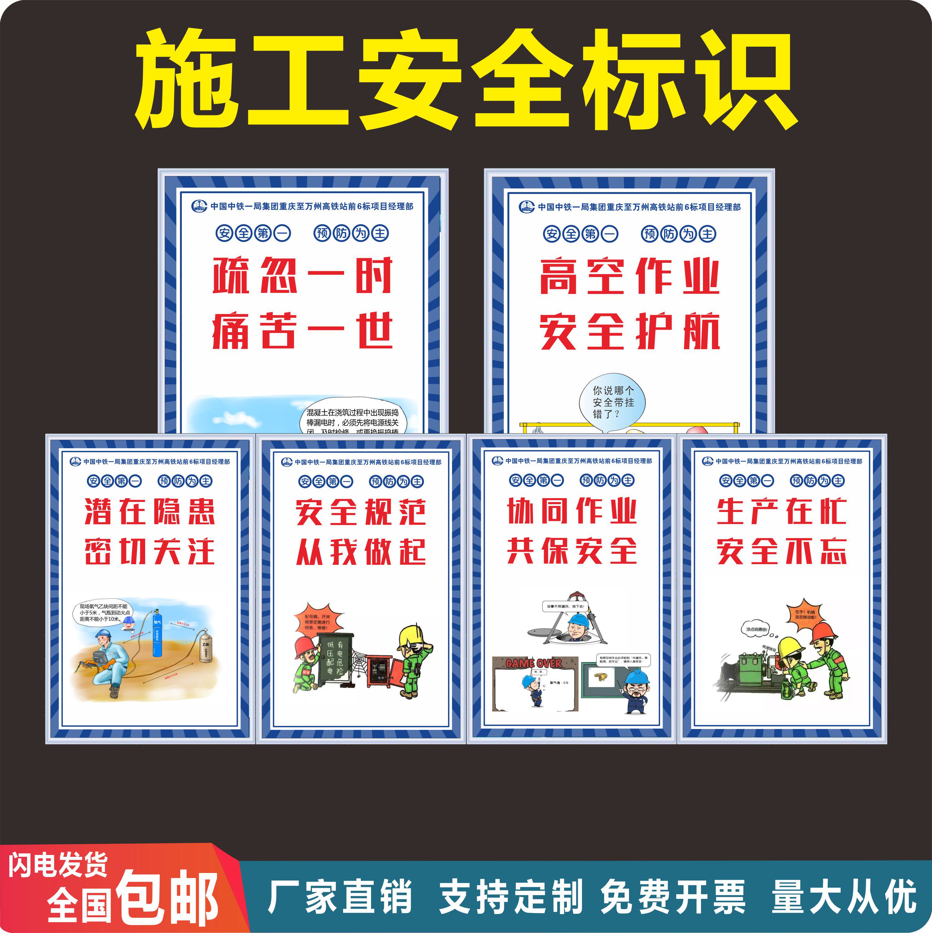 施工安全标语 现场围挡墙宣传海报挂图展板告示牌 建筑工地警示牌