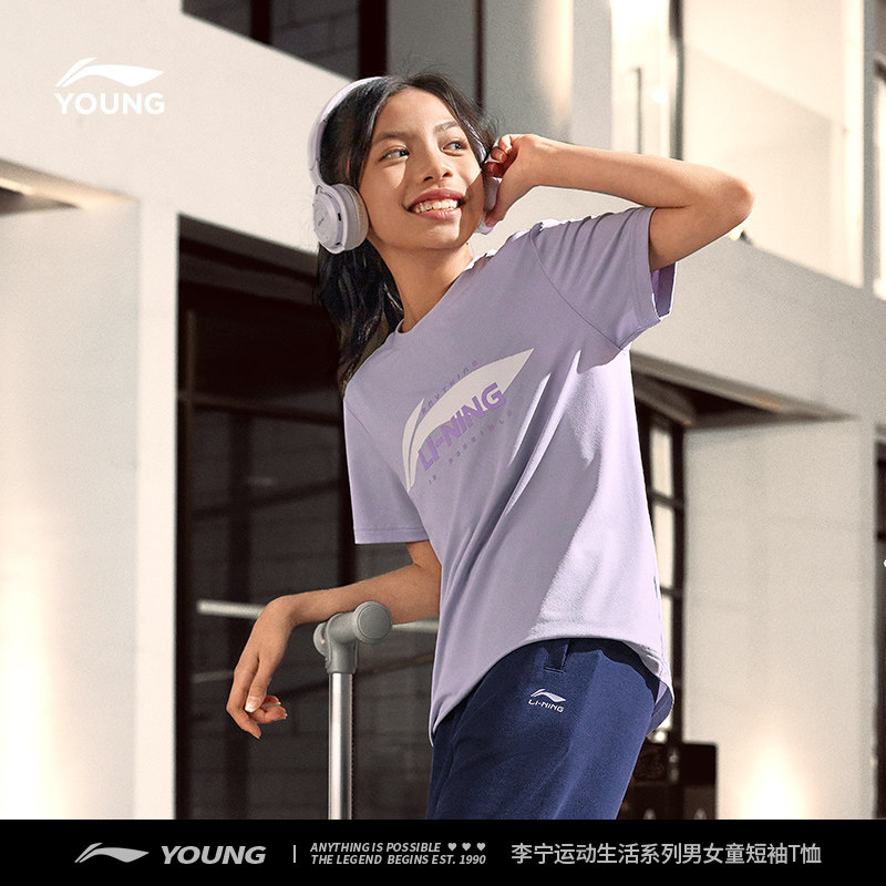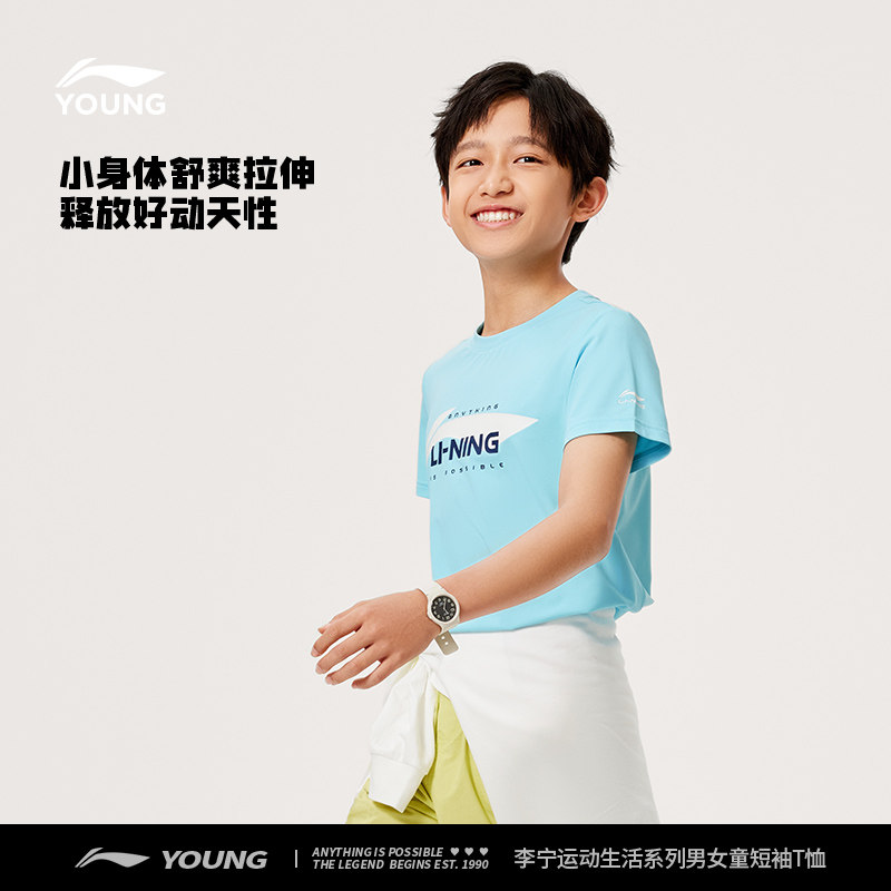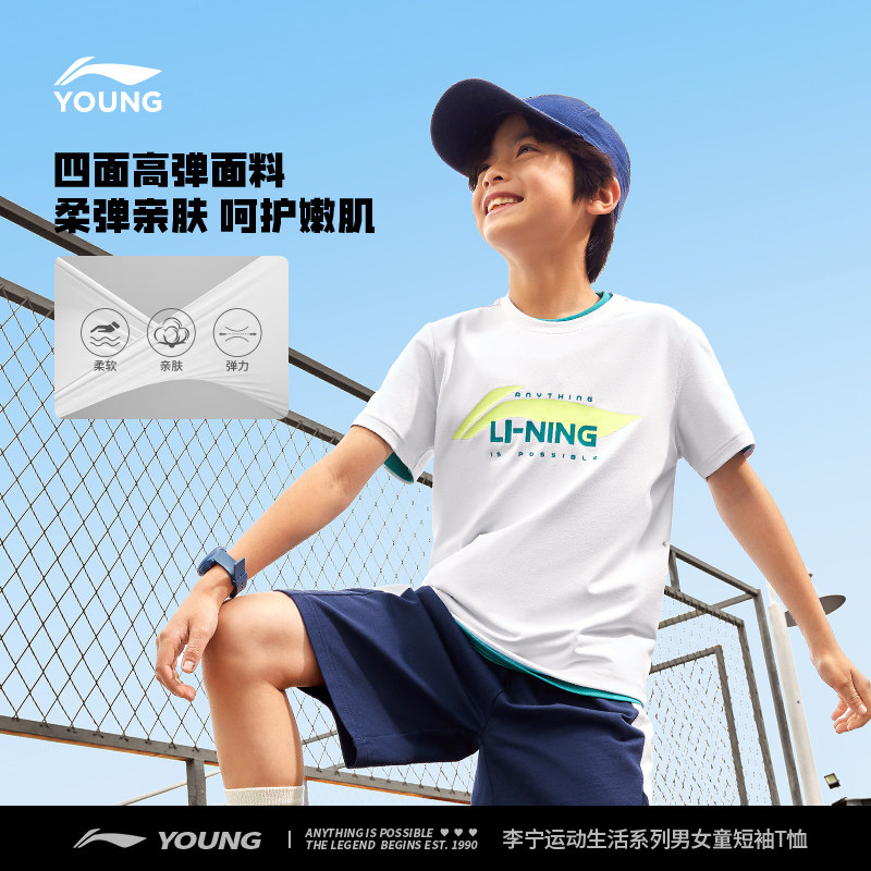 李宁速干衣短袖T恤官方夏季女童装中大童小女孩男夏装休闲运动服