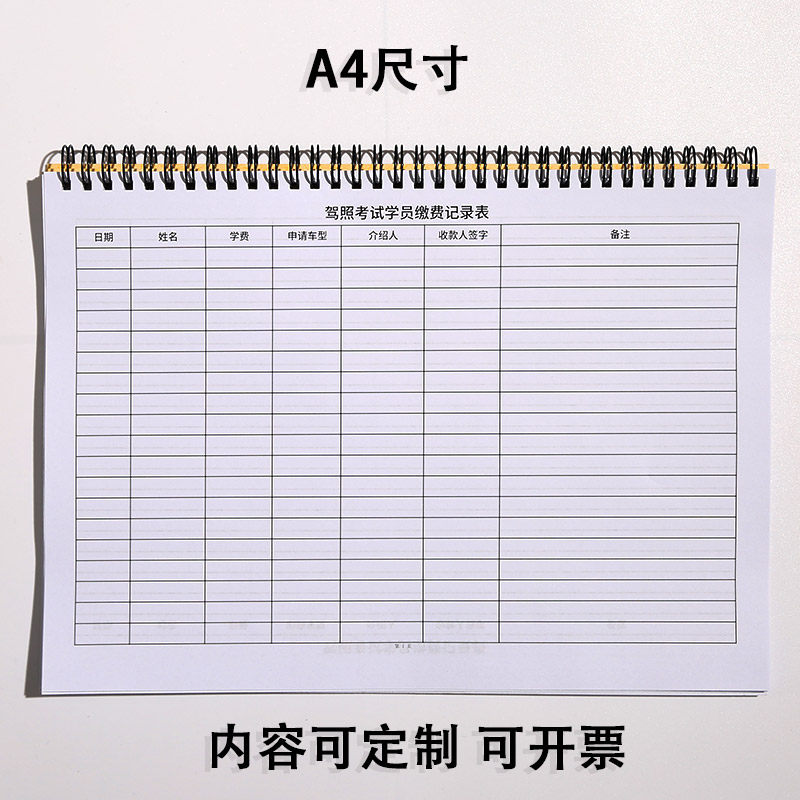 驾照考试学员缴费记录本驾校考试缴费登记本驾校学生驾考交费表