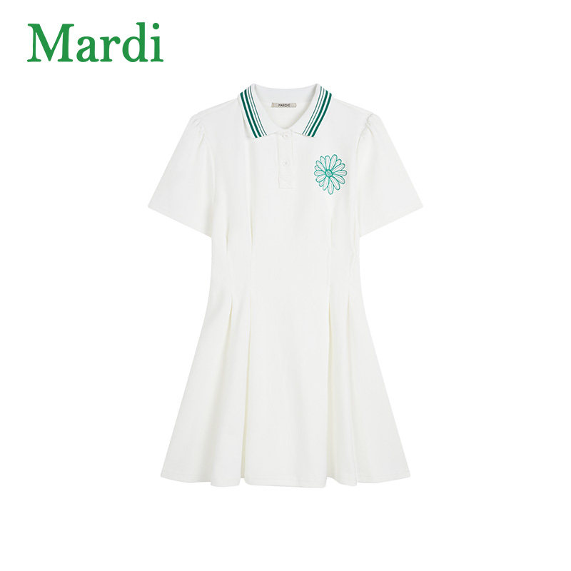 MARDI官方正品小雏菊刺绣polo领连衣裙女收腰修身显瘦翻领裙子夏