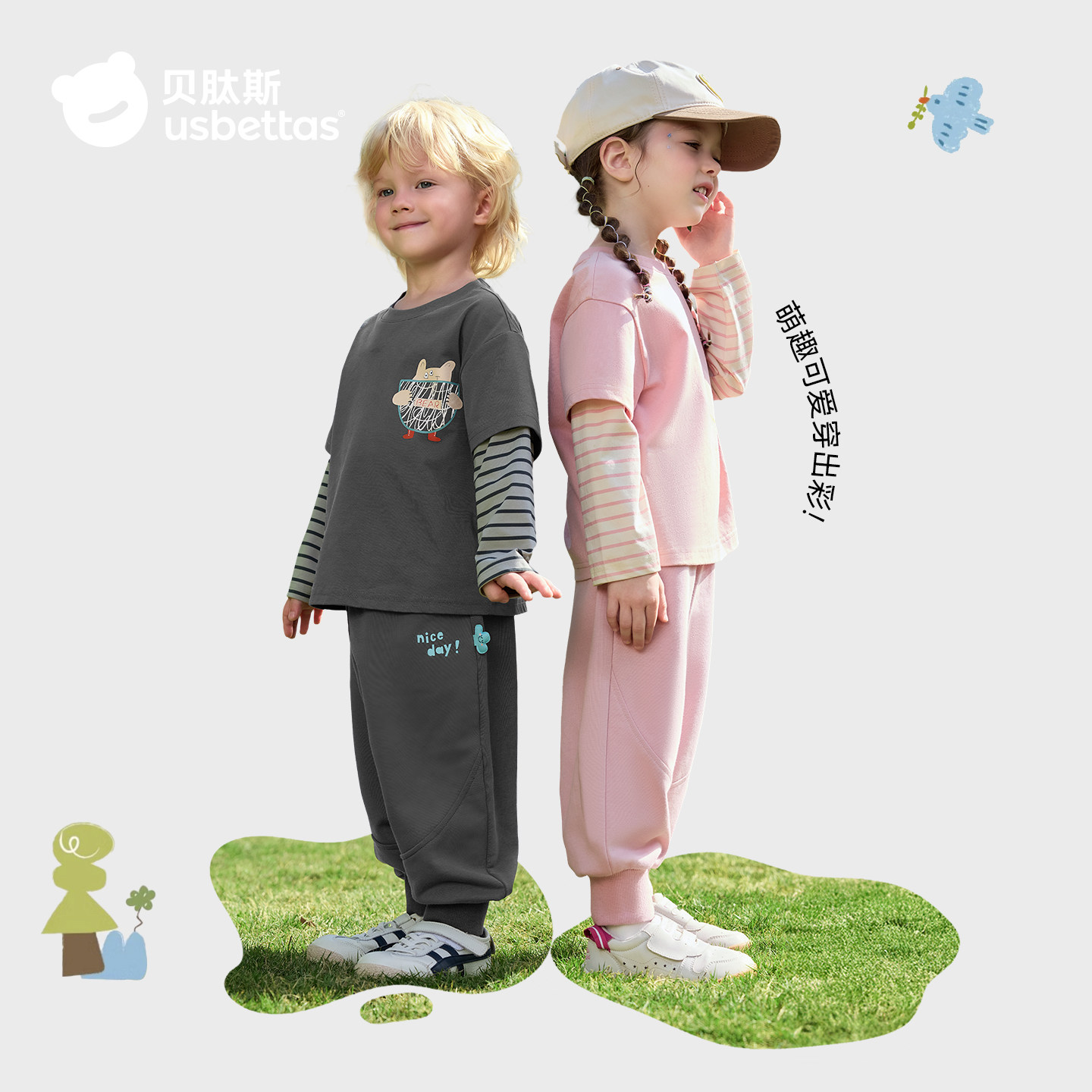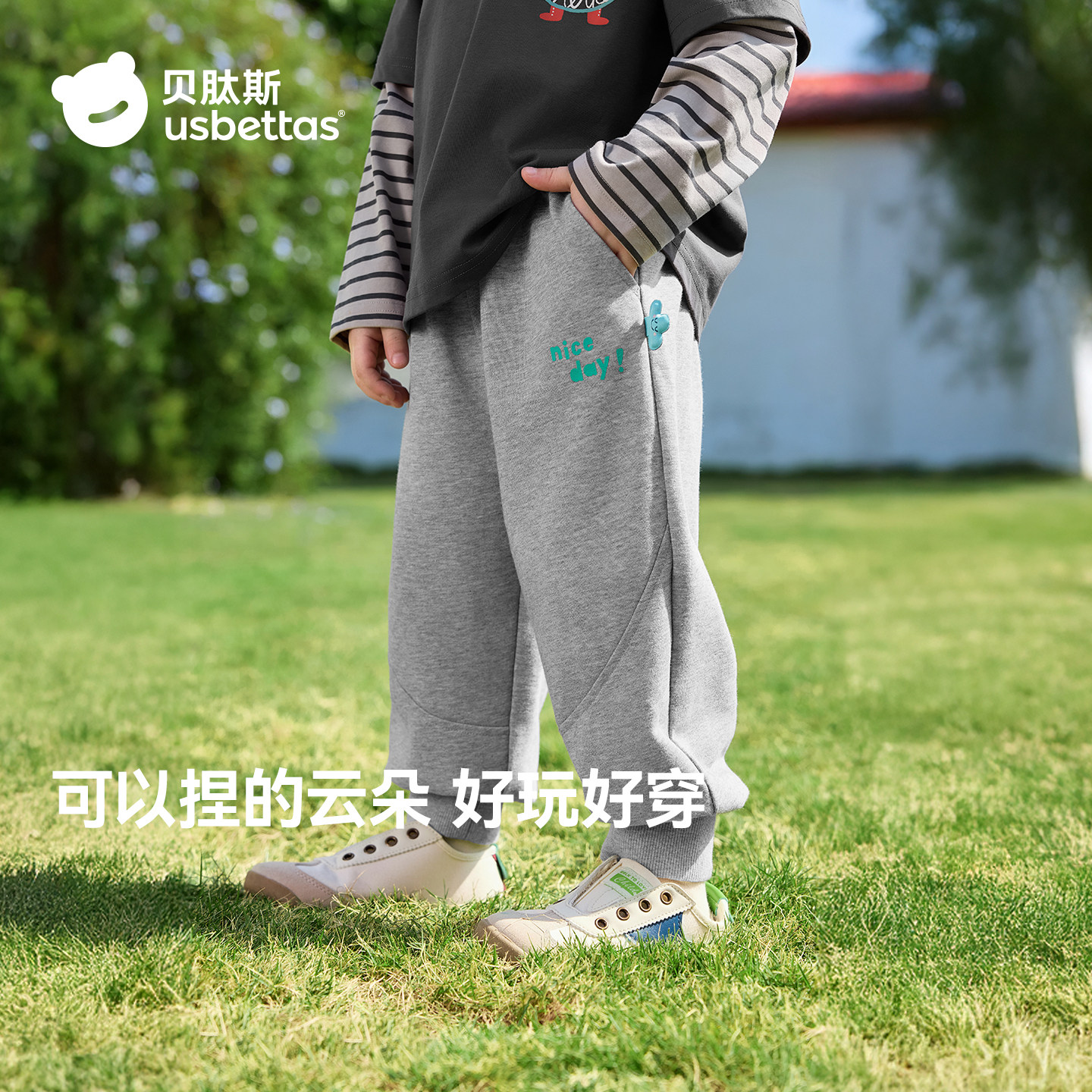 贝肽斯儿童卫裤2026春季新款男童女童裤子宝宝出游长裤休闲束脚裤