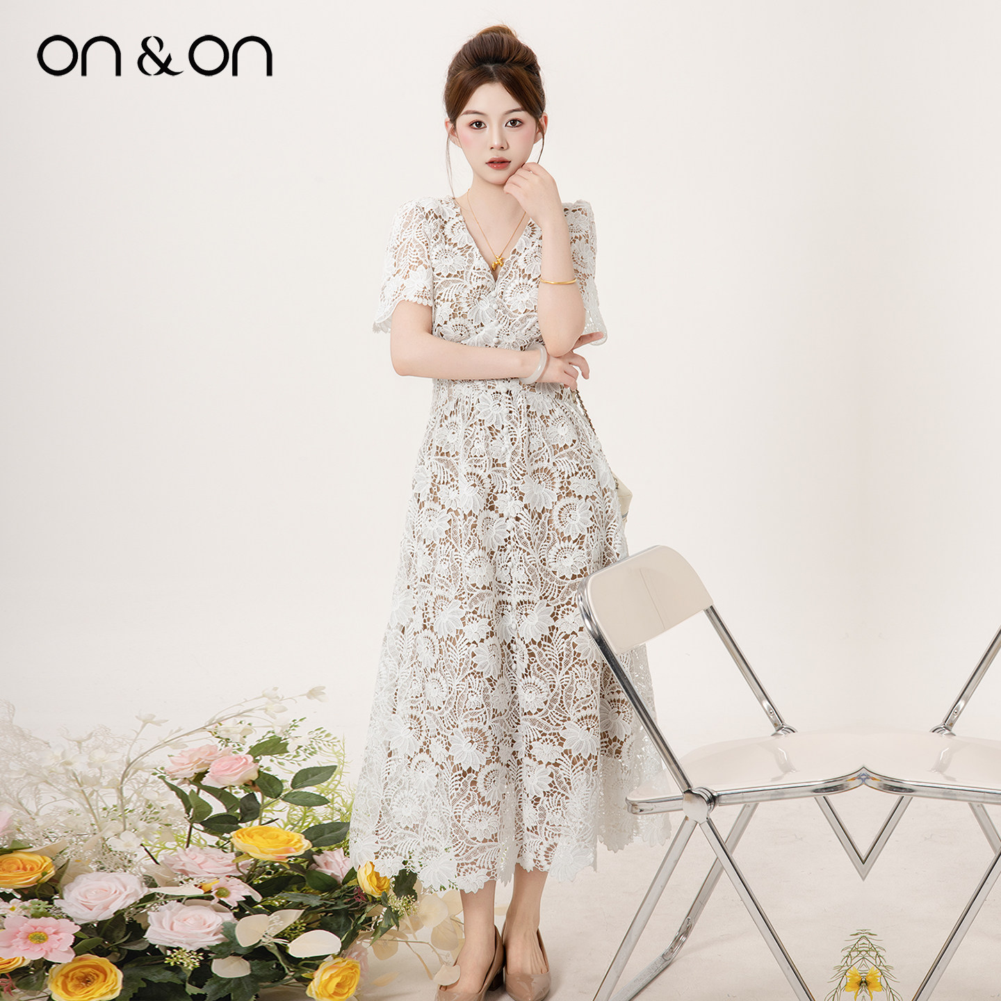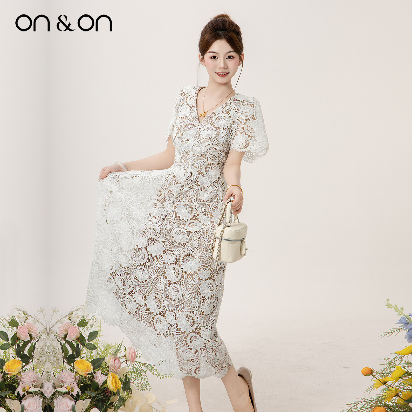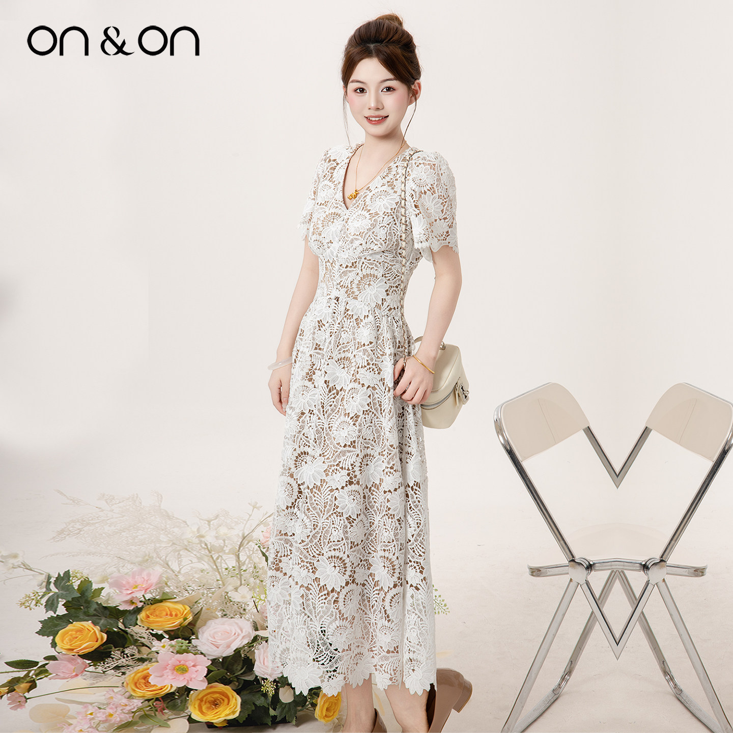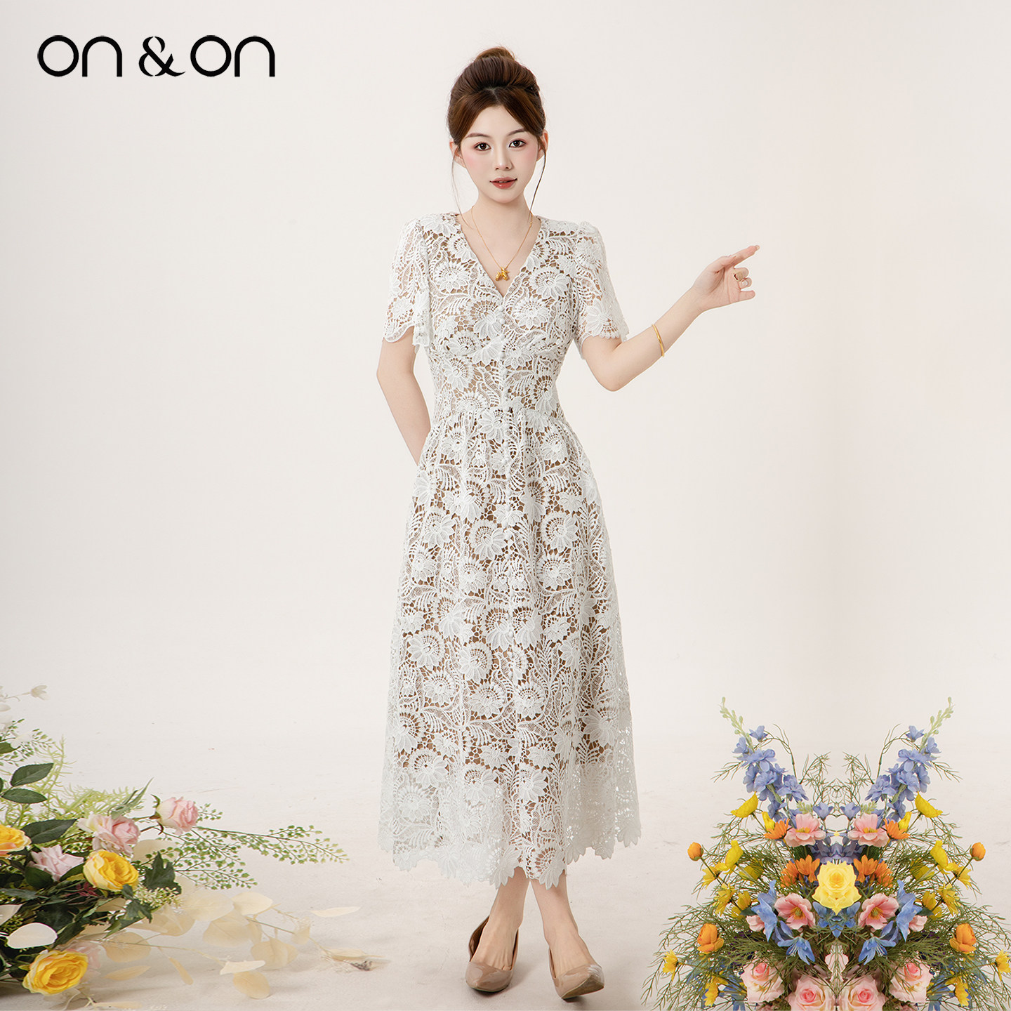 ON&ON/安乃安2026春夏新款优雅重工蕾丝镂空钩花收腰显瘦连衣裙