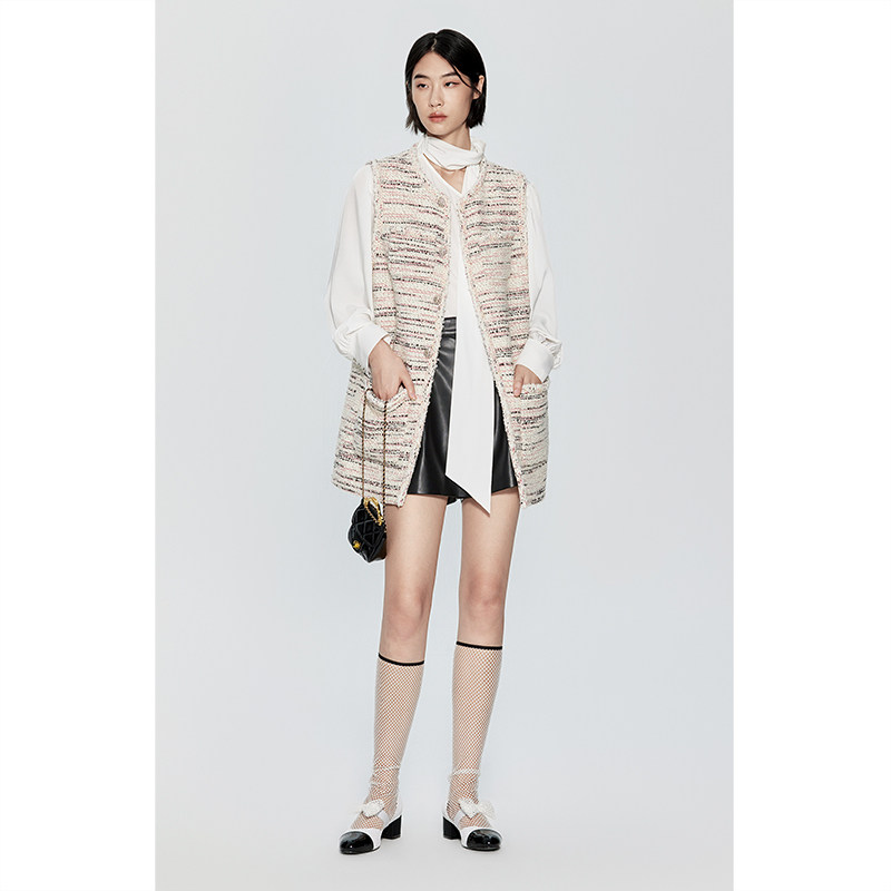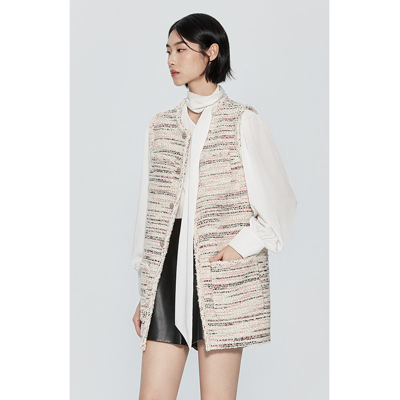 【高奢小香】欧时力进口花式呢马甲外套2023新款春装法式中长款