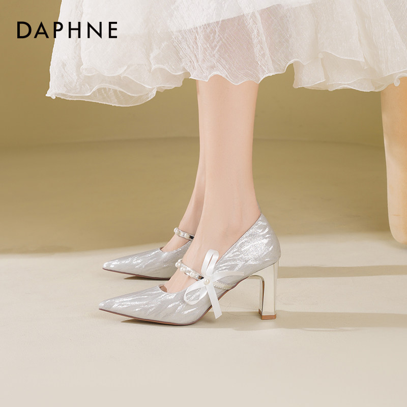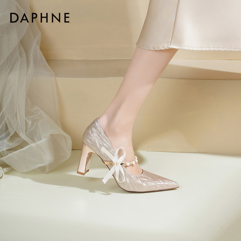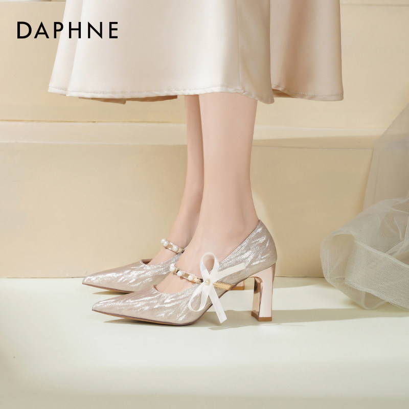 达芙妮婚鞋高跟鞋女2026新款粗跟新娘鞋秀禾婚纱蝴蝶结玛丽珍单鞋
