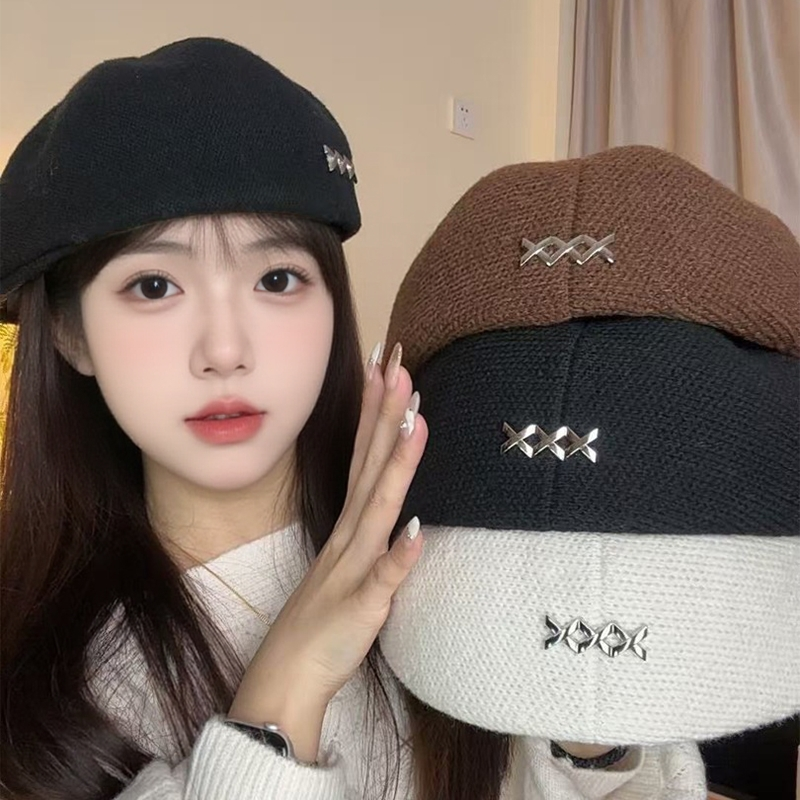 2025新款黑色毛呢贝雷帽女冬季时尚洋气韩系显脸小帽子保暖画家帽