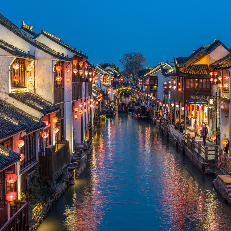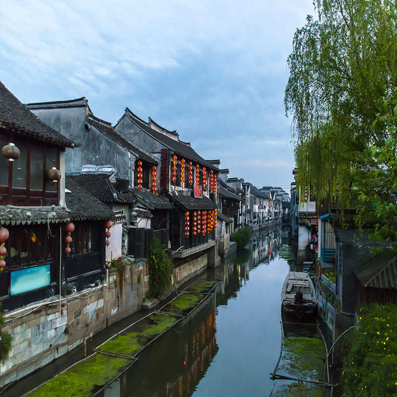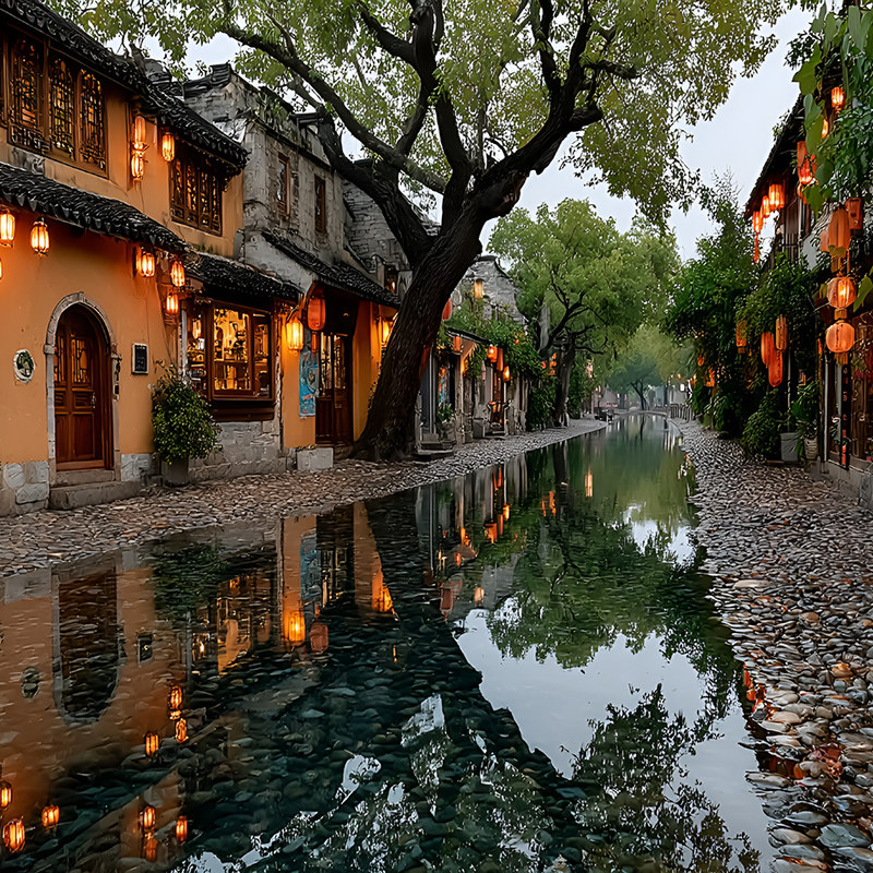 江南水乡风景西塘古镇夜景3d壁画旅游主播民宿包厢直播间背景墙布