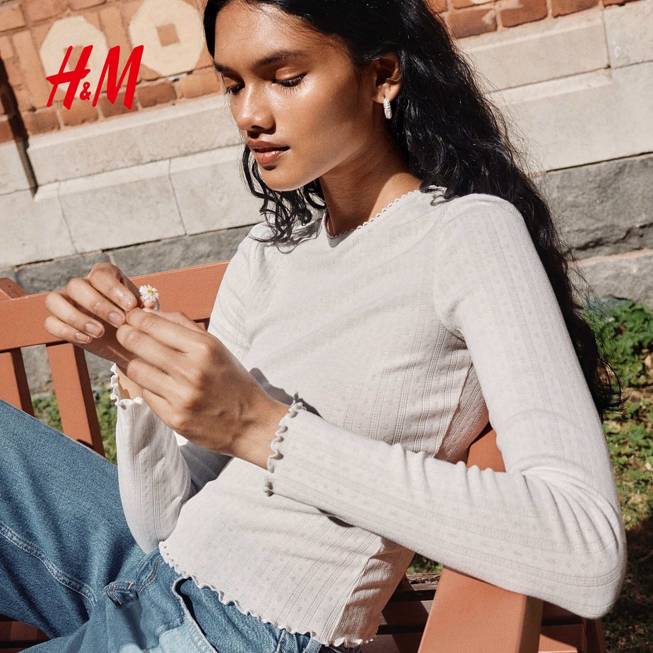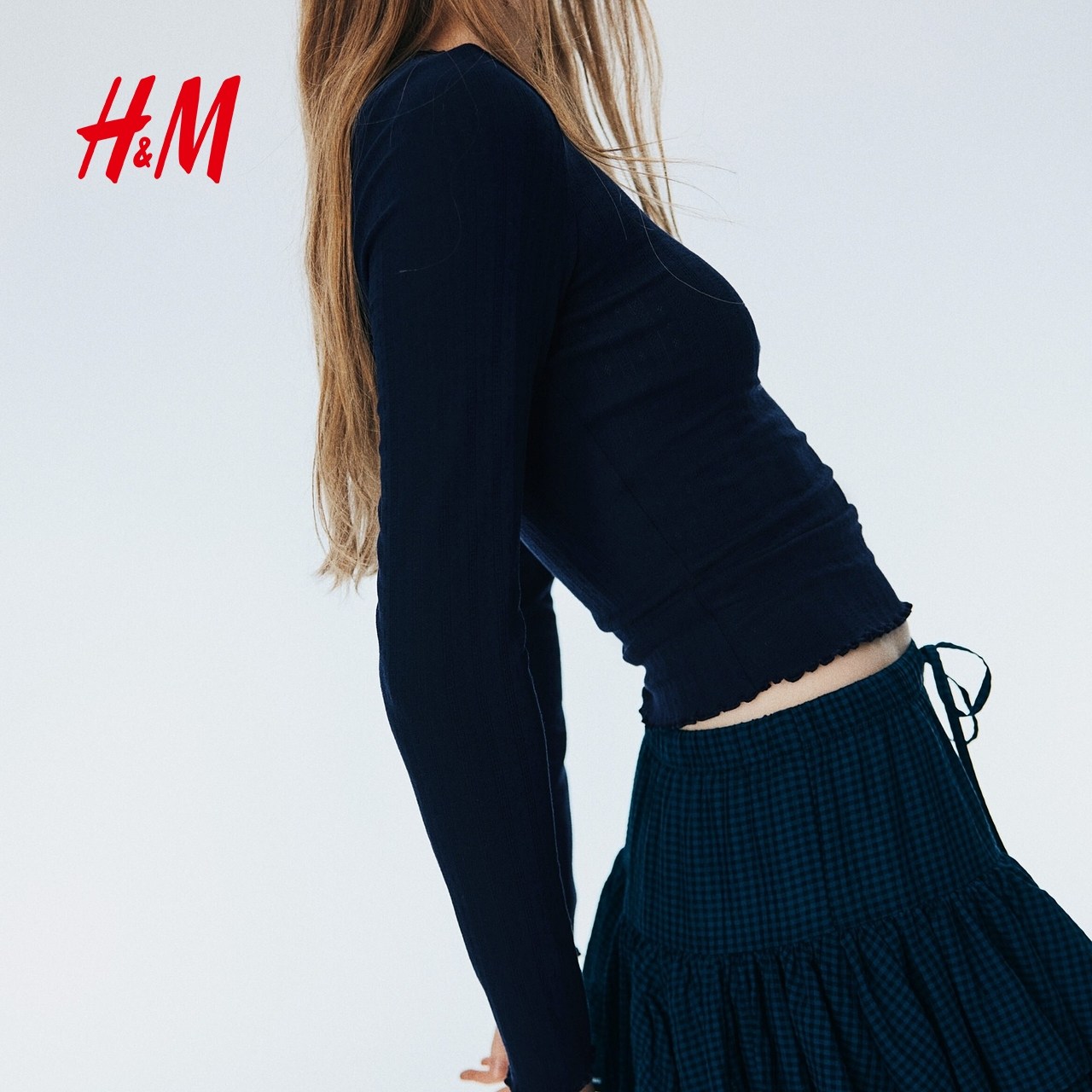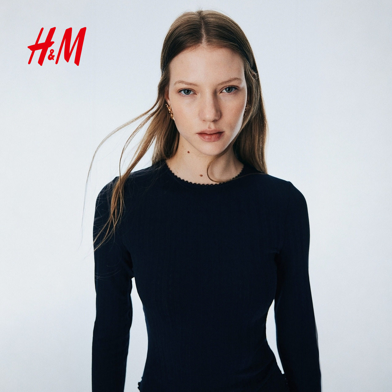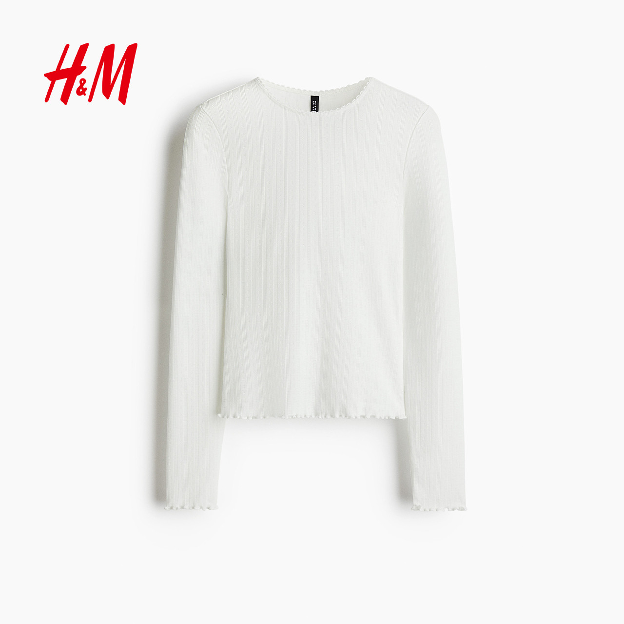 HM女装T恤2025年冬季新款圆领简约时尚气质上衣针织套衫1296047