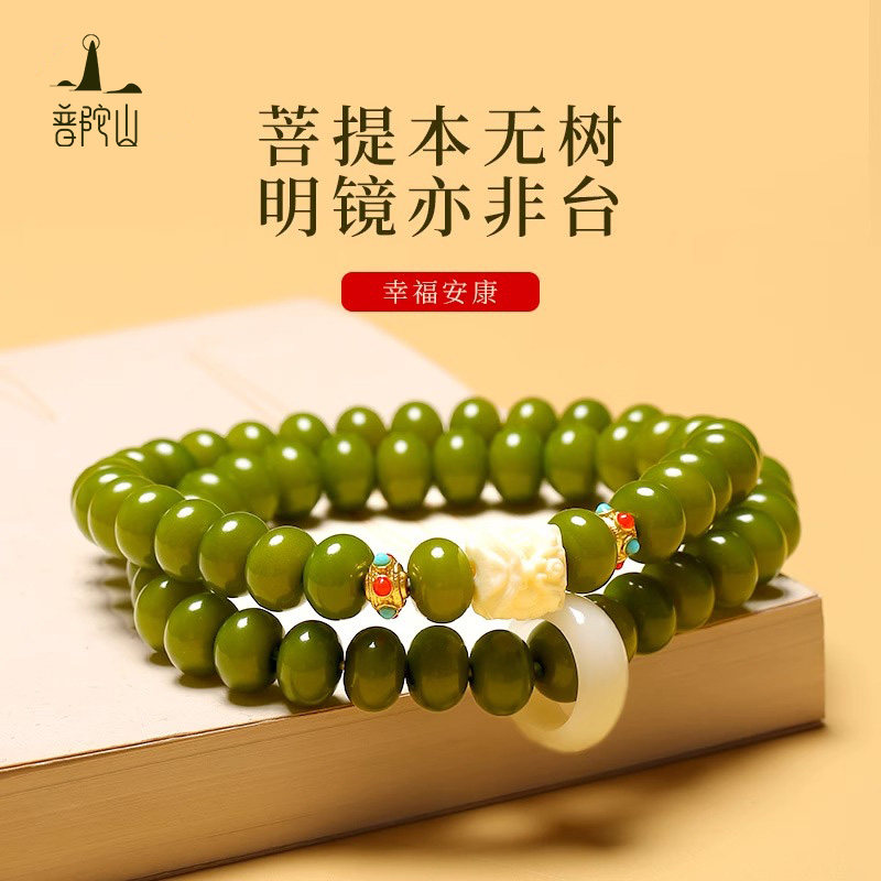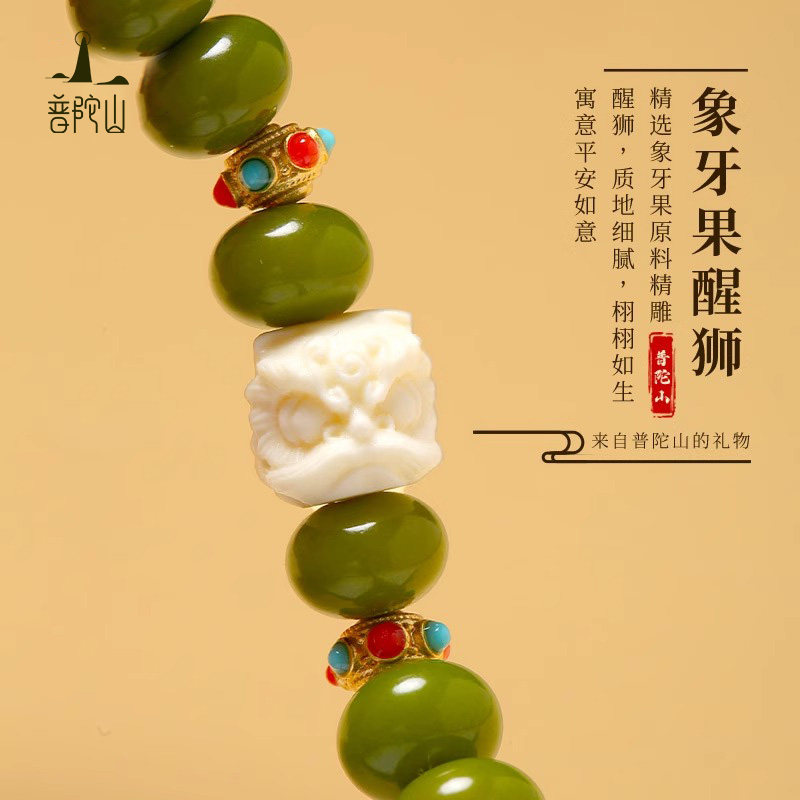 普陀山官方正品菩提手持高档醒狮佛珠双圈手串文玩珠串绕指柔礼物