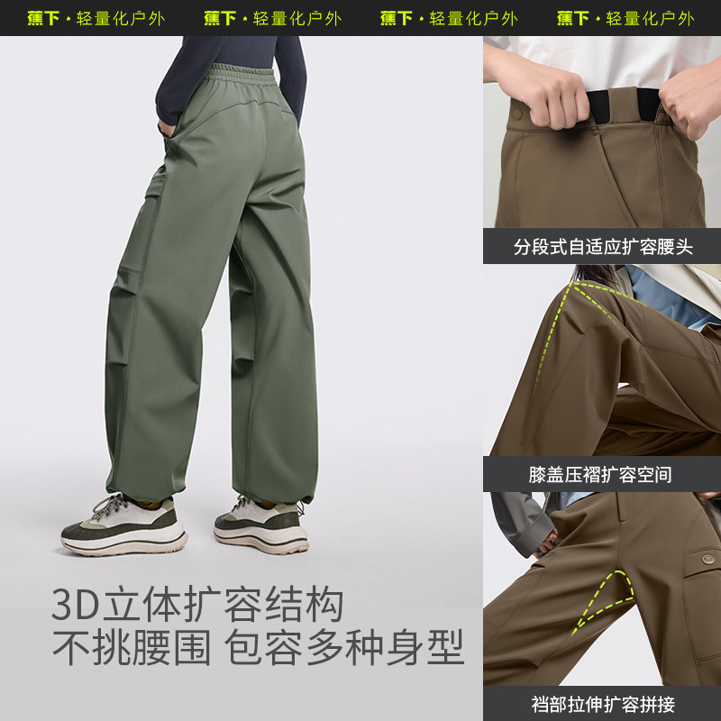 蕉下暴走工装裤女秋冬新款加绒伞兵裤户外防风运动裤速干登山裤子