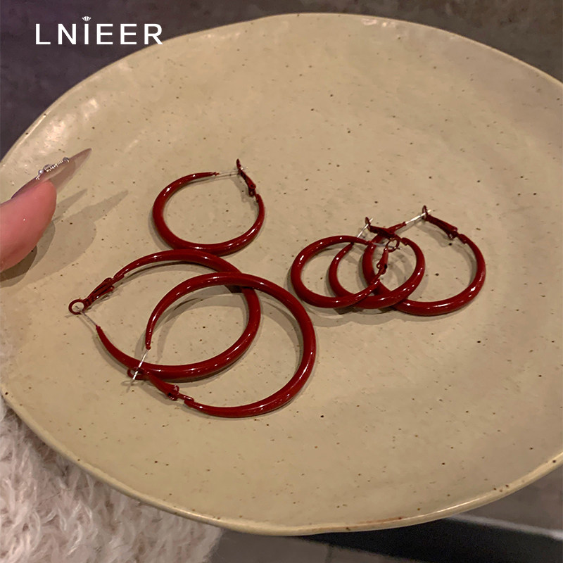 S925纯银针安可拉红圆圈耳环女小众精致高级秋冬耳钉气质耳饰复古