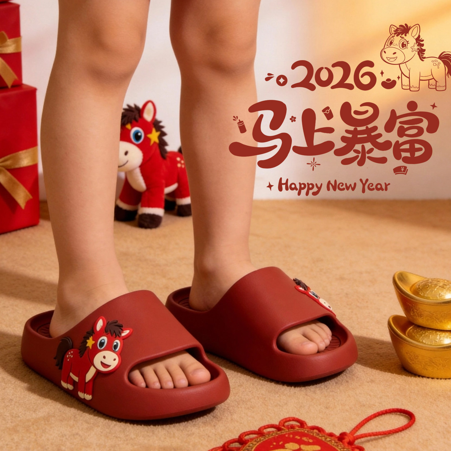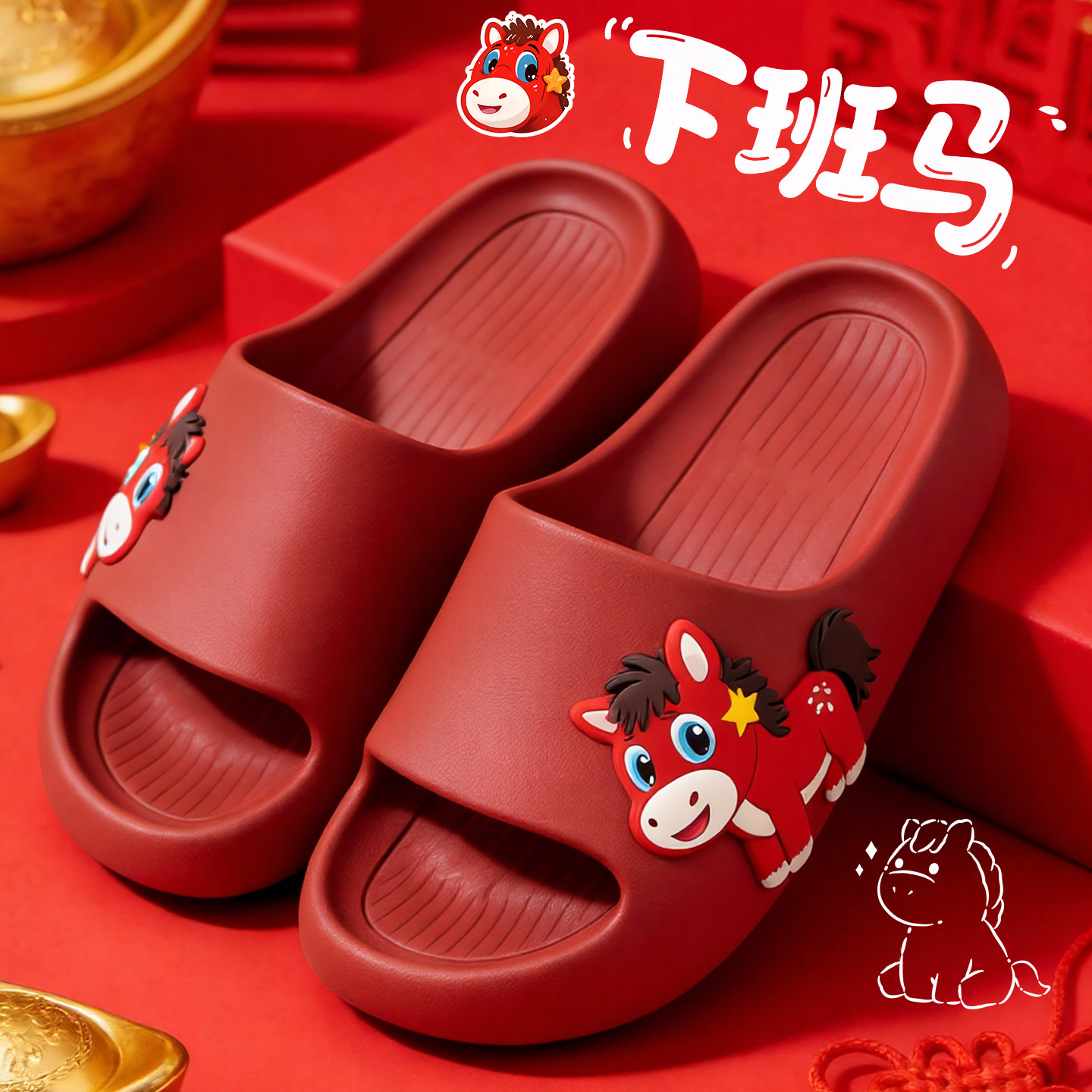 哭哭马拖鞋女款马年2026新款室内居家防滑凉拖男士卡通风春节耐磨