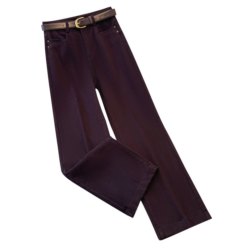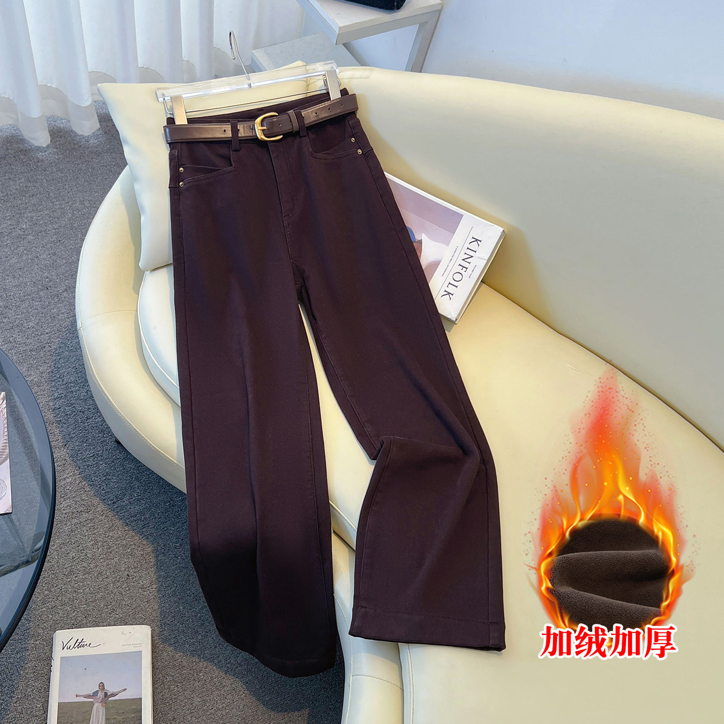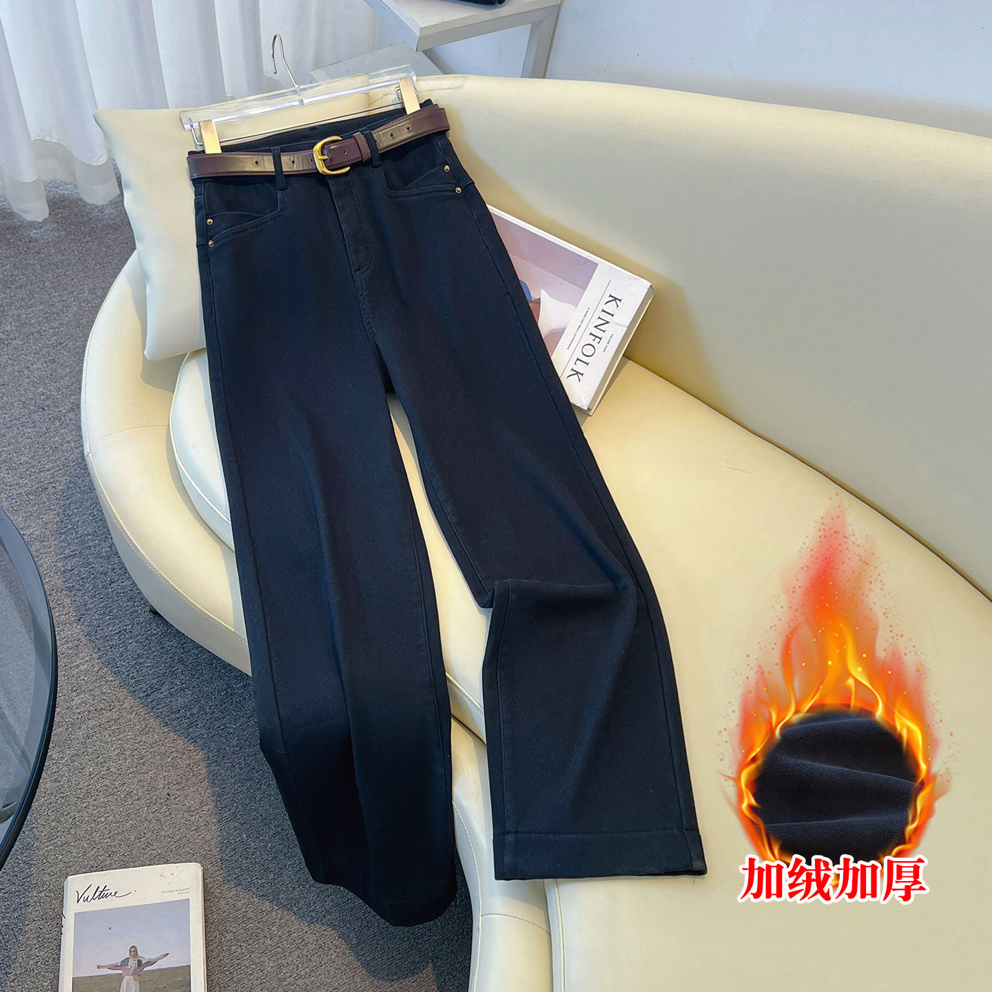王家有鱼秋冬新款加绒阔腿裤2025百搭修身显瘦宽松直筒牛仔裤子女