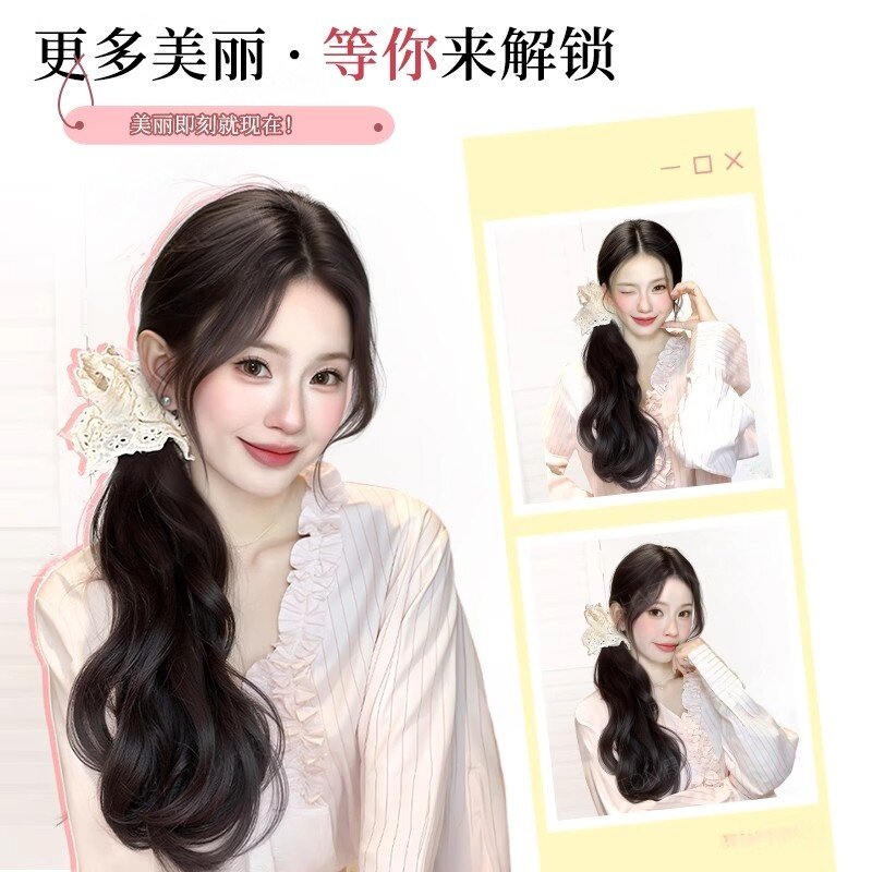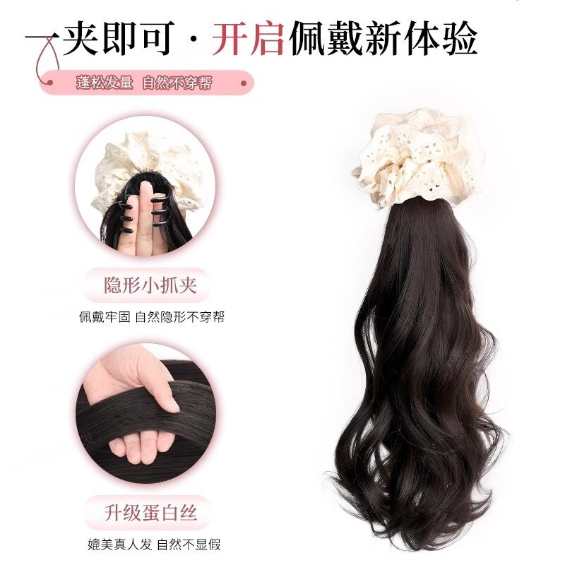 马尾假发女自然蓬松韩系抓夹式低扎侧马尾蕾丝发圈长卷发假发辫子