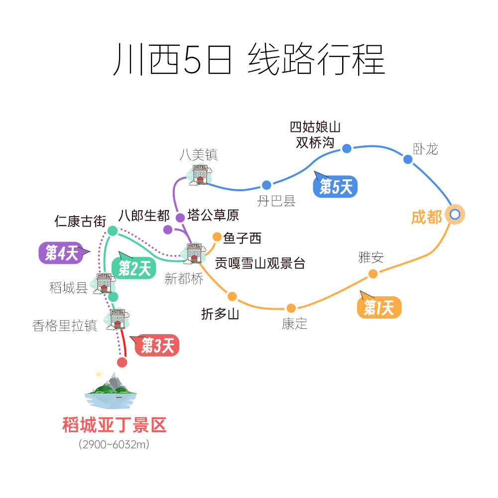 成都出发稻城亚丁旅游5天4晚川西大环线跟团游鱼子西四姑娘山小团
